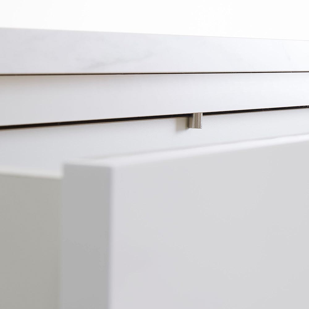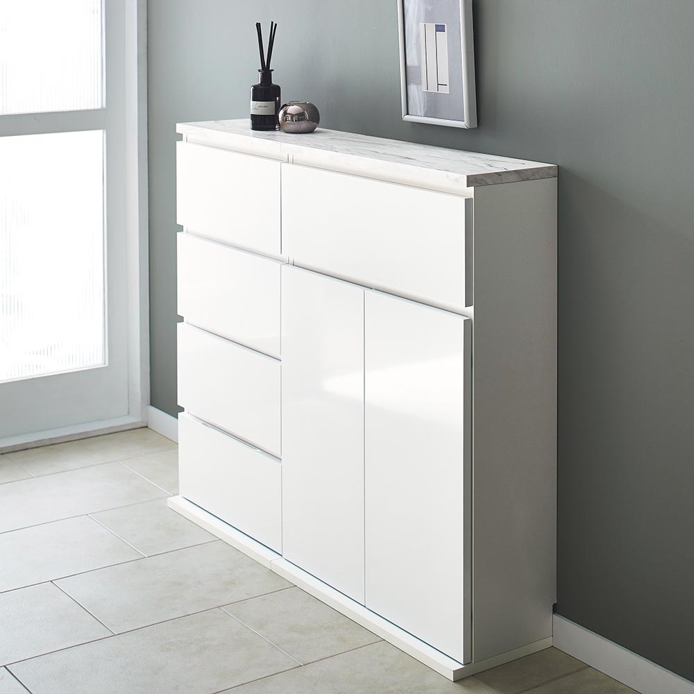 ●熱や水に強く耐久性のあるメラミン天板なので水回りの収納やダイニングキッチンでも使用できます。●前板は、汚れてもサッと拭き取れる光沢感のある仕上げです。