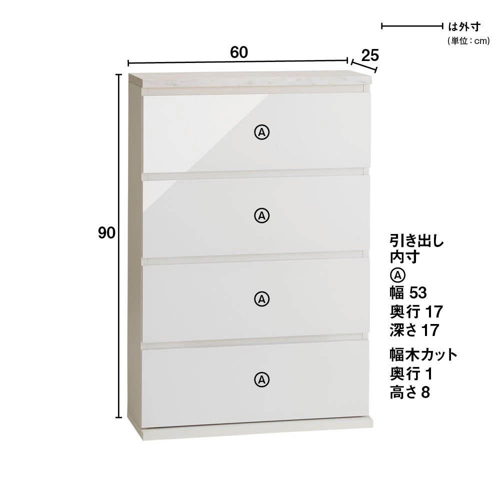 ■サイズ:幅60cm奥行25cm高さ90cm、引き出し奥行17cm