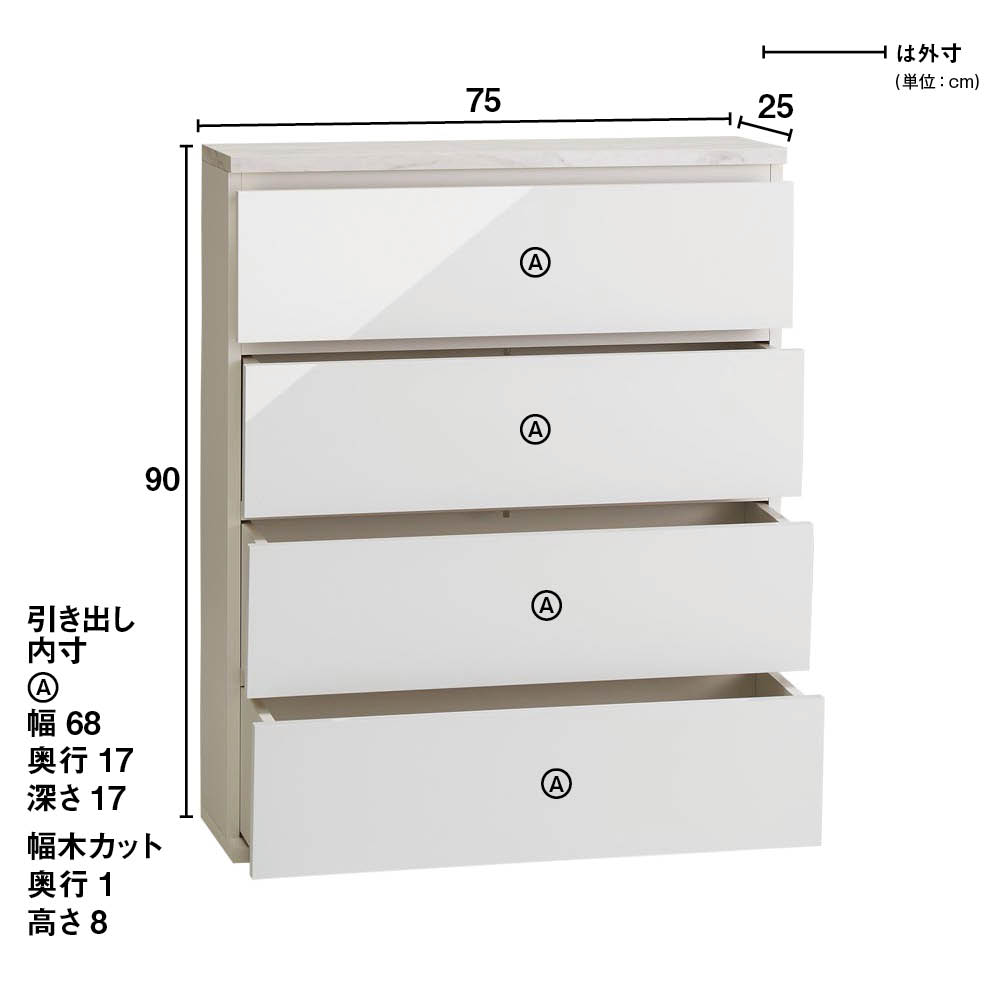 ■サイズ:幅75cm奥行25cm高さ90cm、引き出し奥行17cm