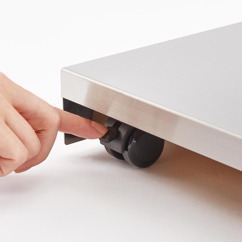裏側のキャスター2個はストッパー付きなので、固定してもお使いいただけます。