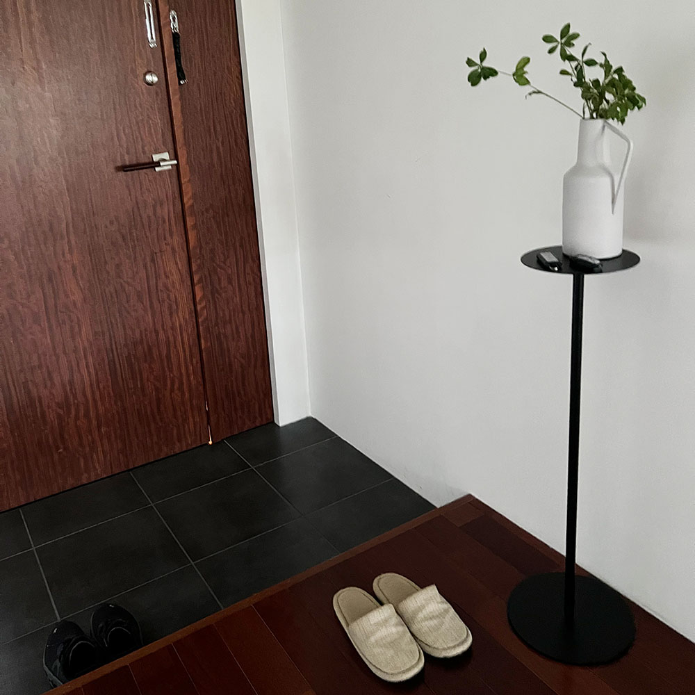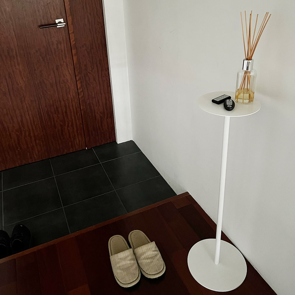• 玄関先はコーナーに設置して、観葉植物や鍵などを置く台として重宝します。