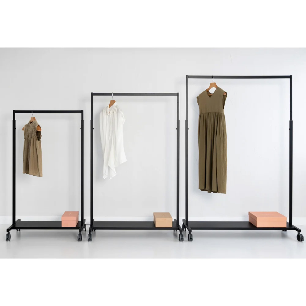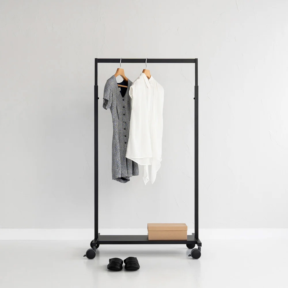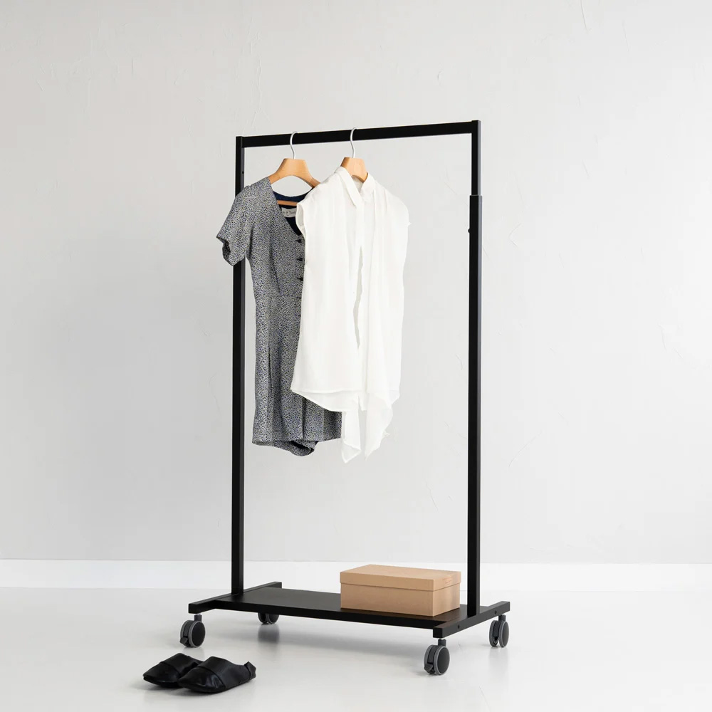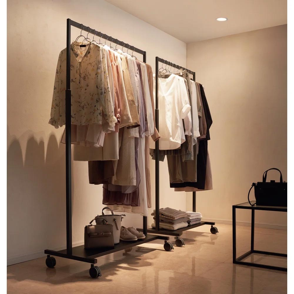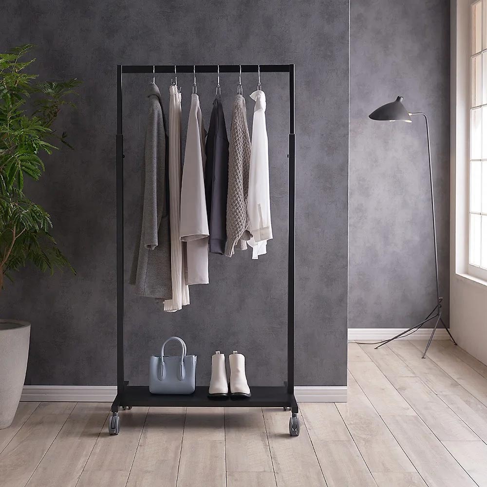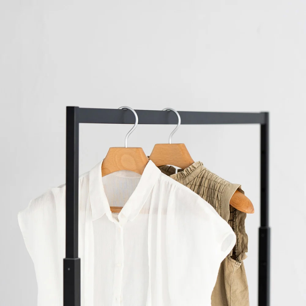 マットなブラック塗装と滑らかな溶接が特徴。高級感あるモダンデザインがインテリアの邪魔をせず洋服を引き立てます。