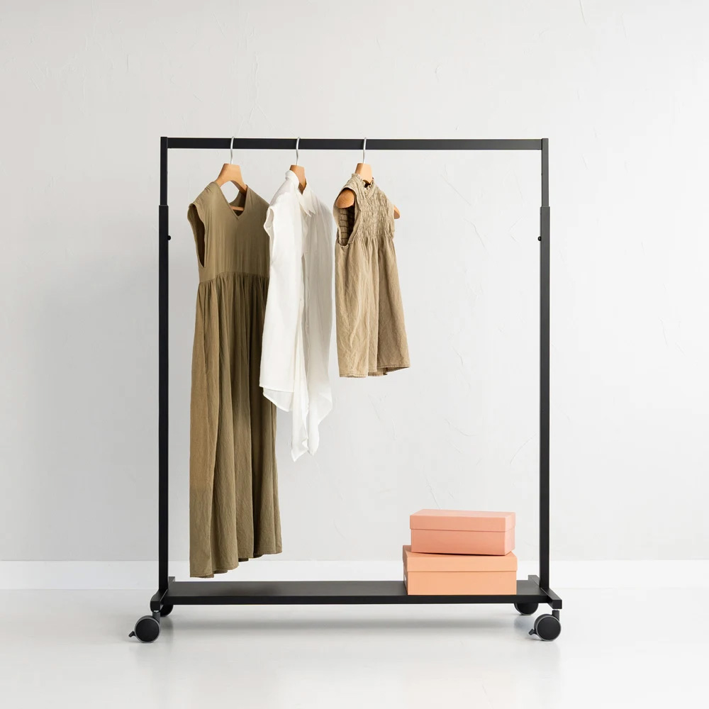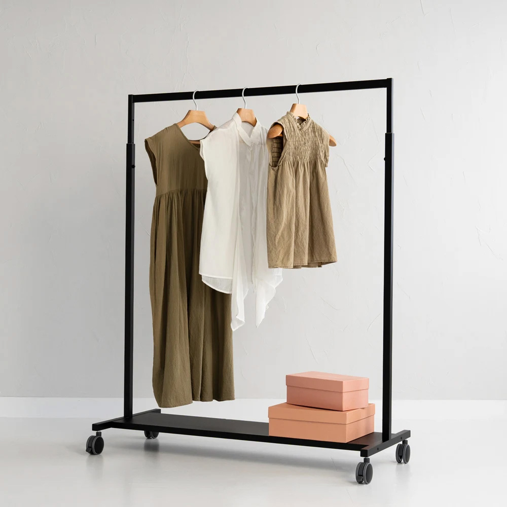 マットなブラック塗装と滑らかな溶接が特徴。高級感あるモダンデザインがインテリアの邪魔をせず洋服を引き立てます。