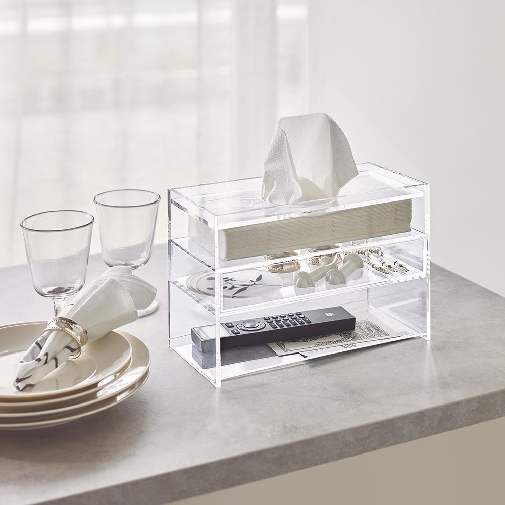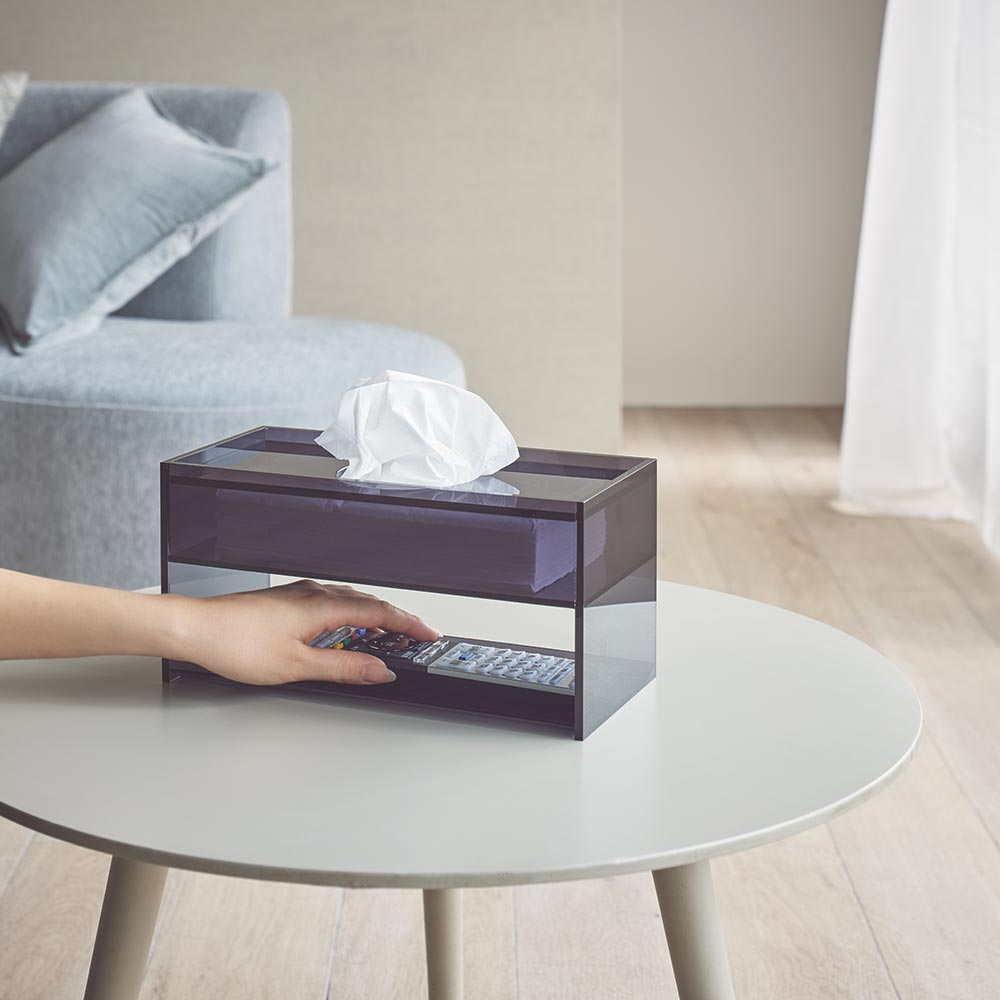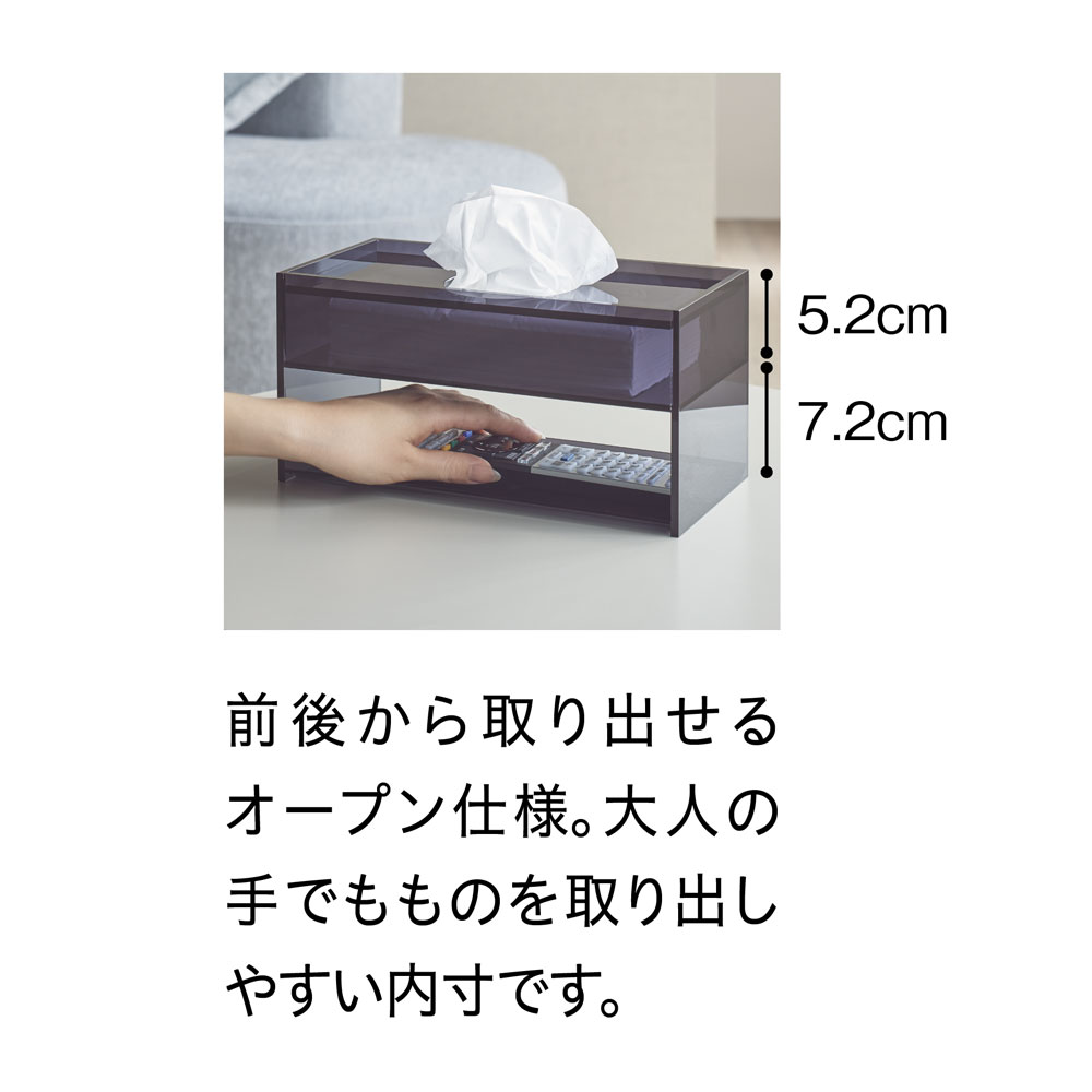 アクリル製ティッシュボックス リモコン収納・引き出し付き インテリア雑貨 H92510
