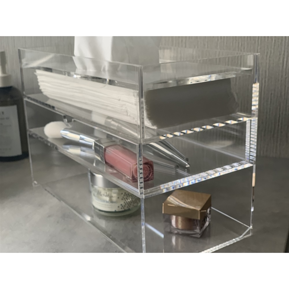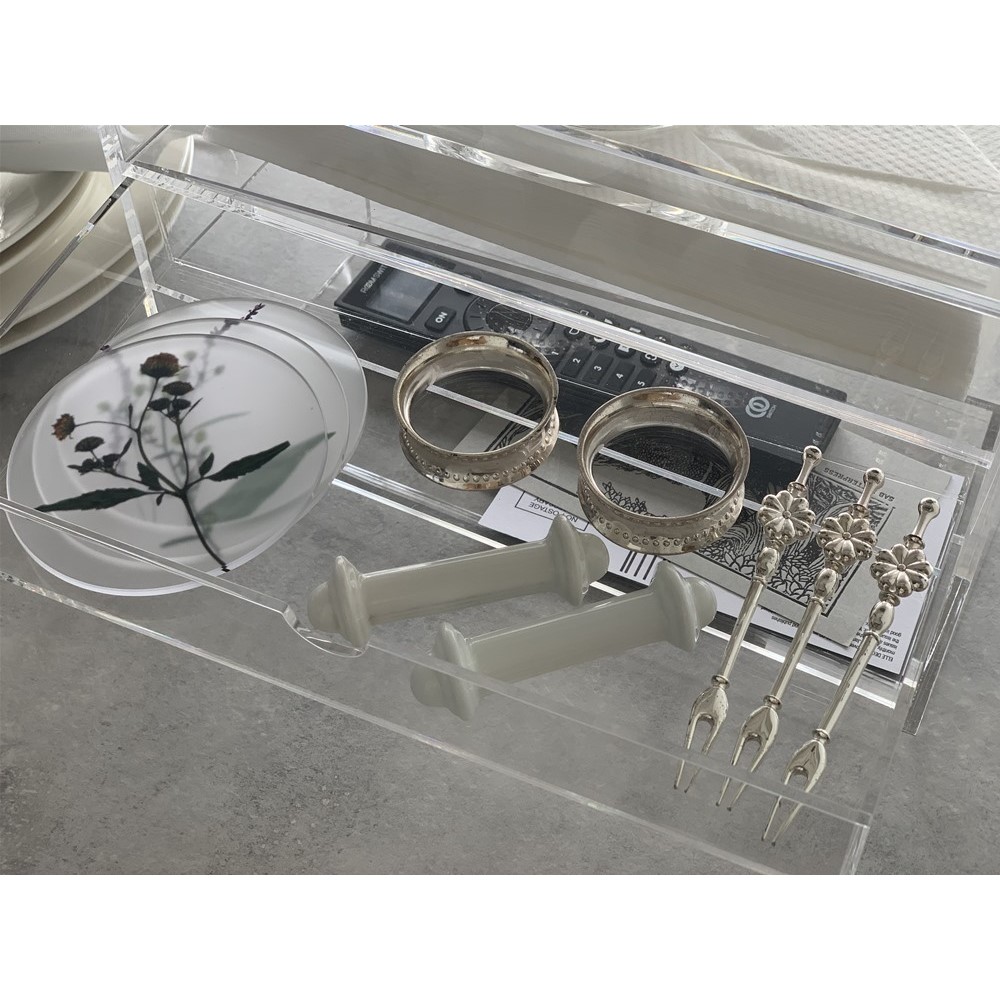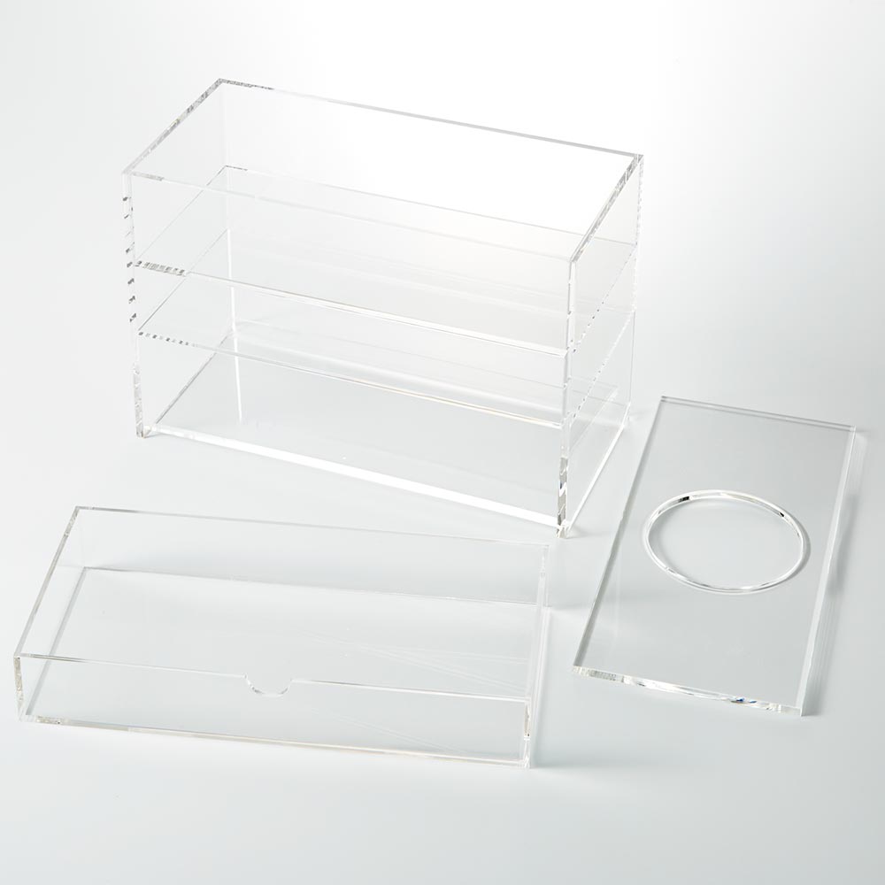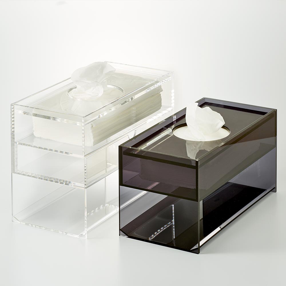 アクリル製ティッシュボックス リモコン収納・引き出し付き インテリア雑貨 H92510