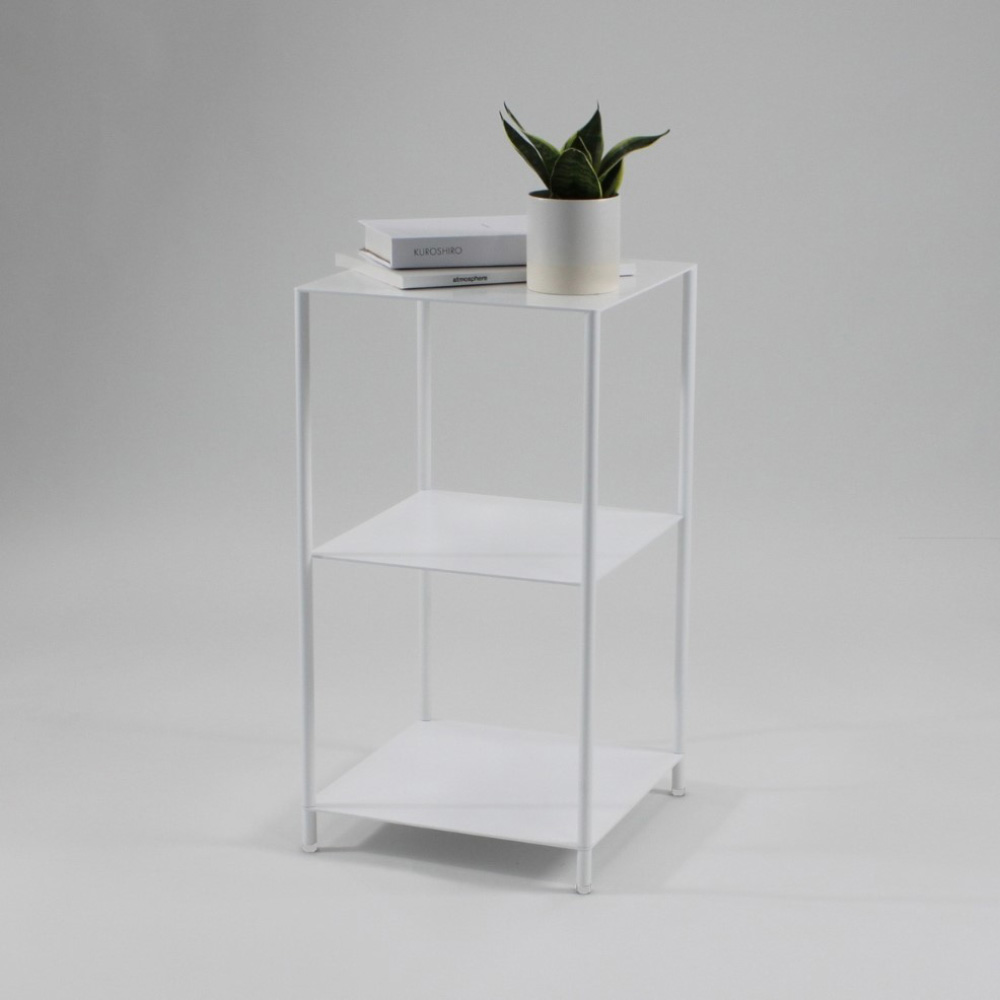 シンプルデザインのシェルフ。お気に入りのものをディスプレイしたり、収納したりと、使い方は様々。