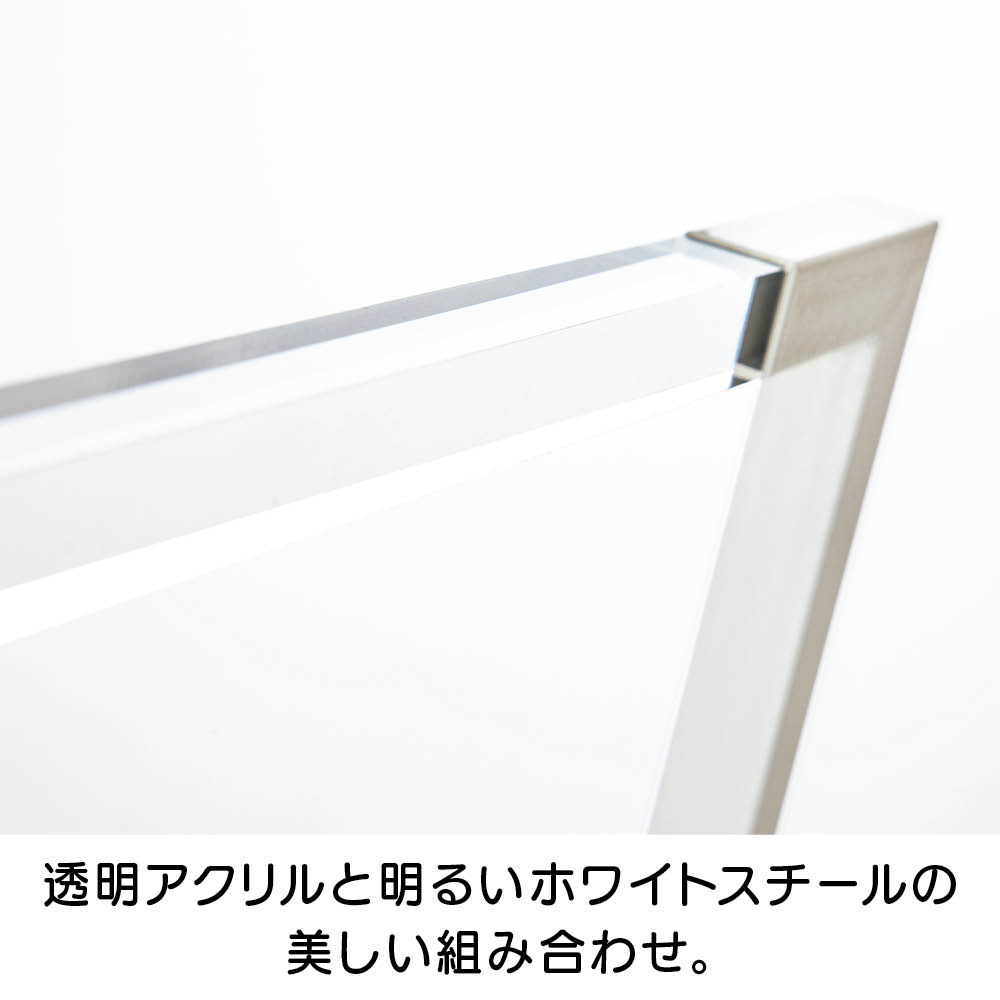 余分な装飾がなく、機能的な美しさが特徴の北欧調のインテリアとも相性のよいデザイン。透明アクリルとホワイトの色調も、明るい室内にピッタリです。脚部の開き止めは合成皮革のベルトなので、高級感があります。