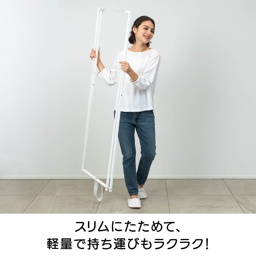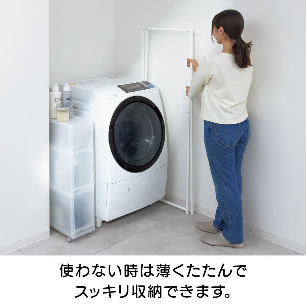 折りたためば、厚さ4cm。洗濯機と壁のすき間など、省スペースに収納できます。