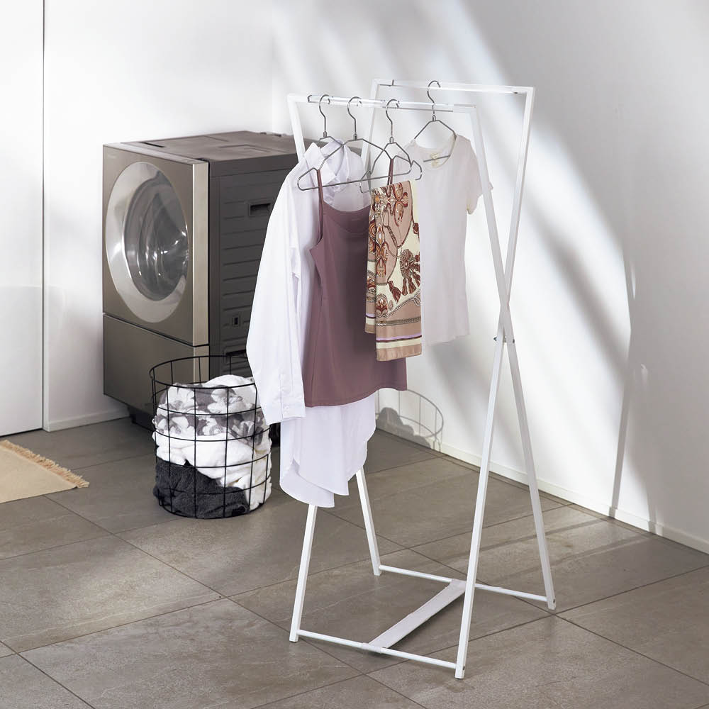 モダンでスタイリッシュな印象なので、こだわりのインテリアにも生活感を出さずに置くことができます。洗濯物を干せるのはもちろん、ハンガーラック代わりとしても使えます。