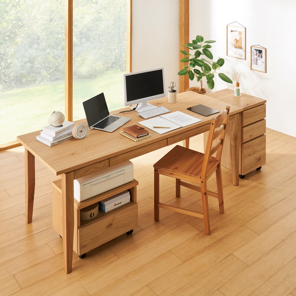 コーディネート例(ア)ナチュラル ※写真はデスク幅180奥行70cm、チェスト、プリンターワゴンです。
