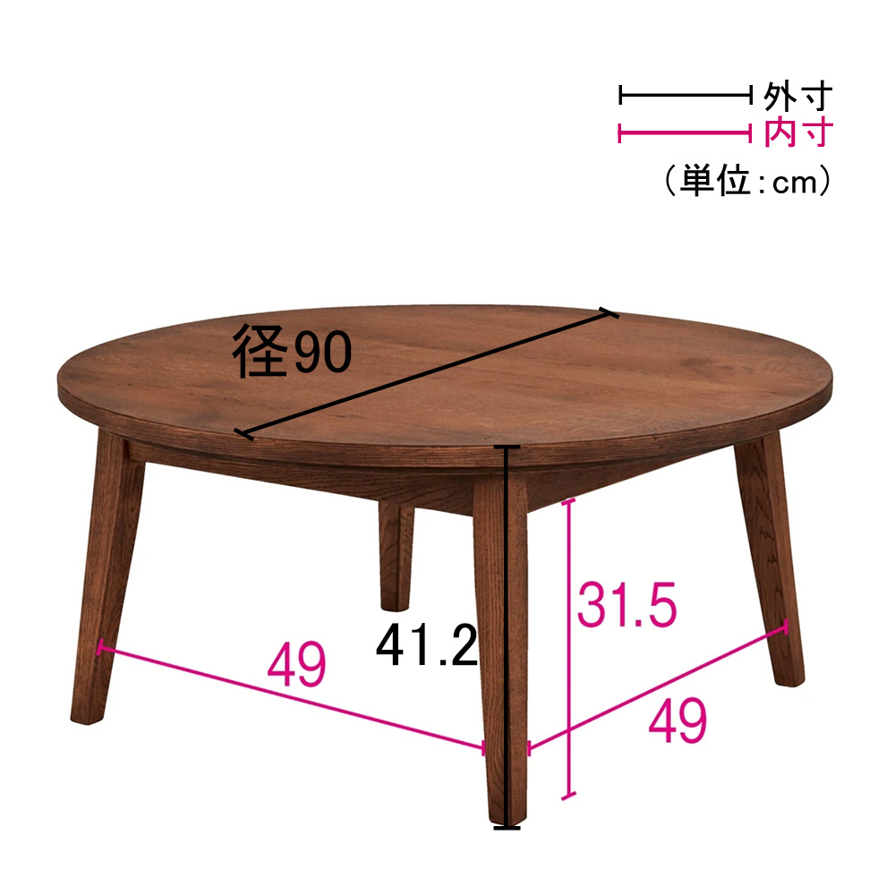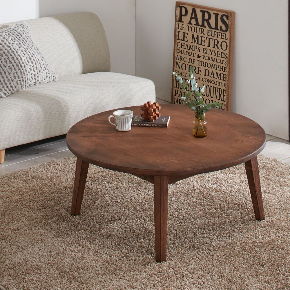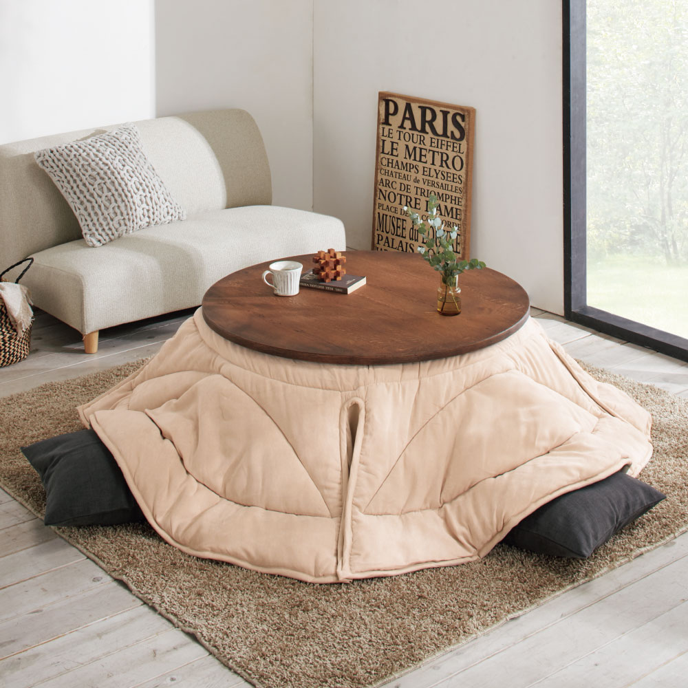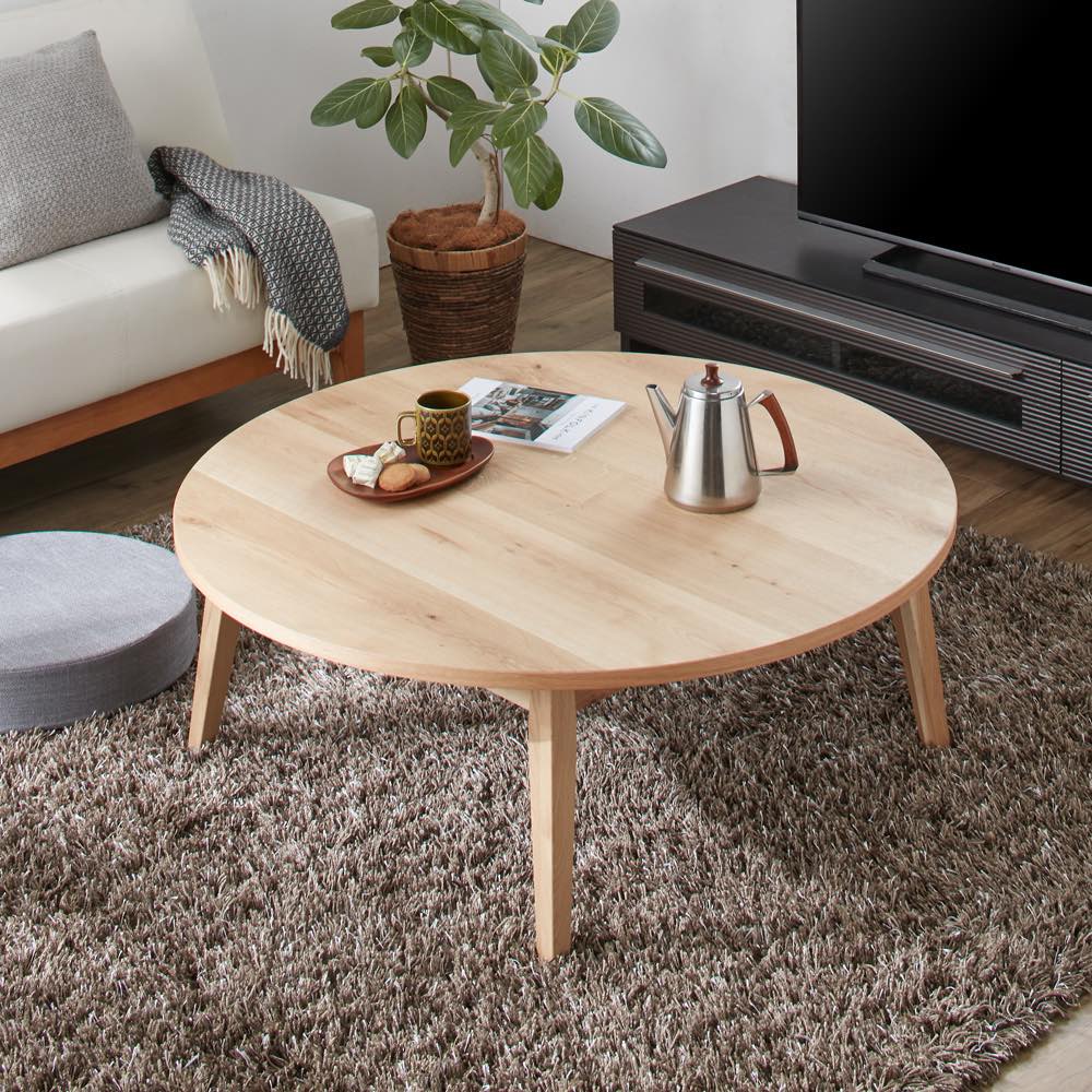 北海道産ミズナラ天然木のローこたつ 丸型 径90cm こたつテーブル こたつ 611454