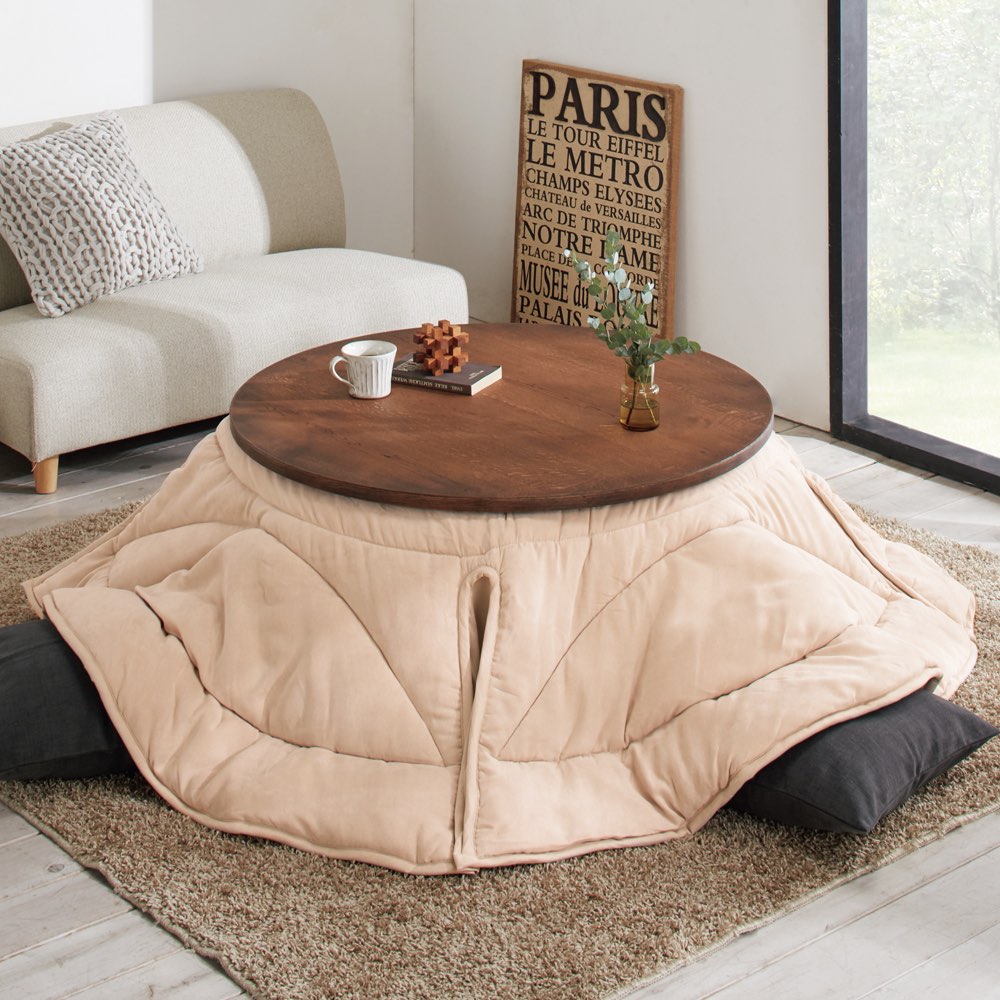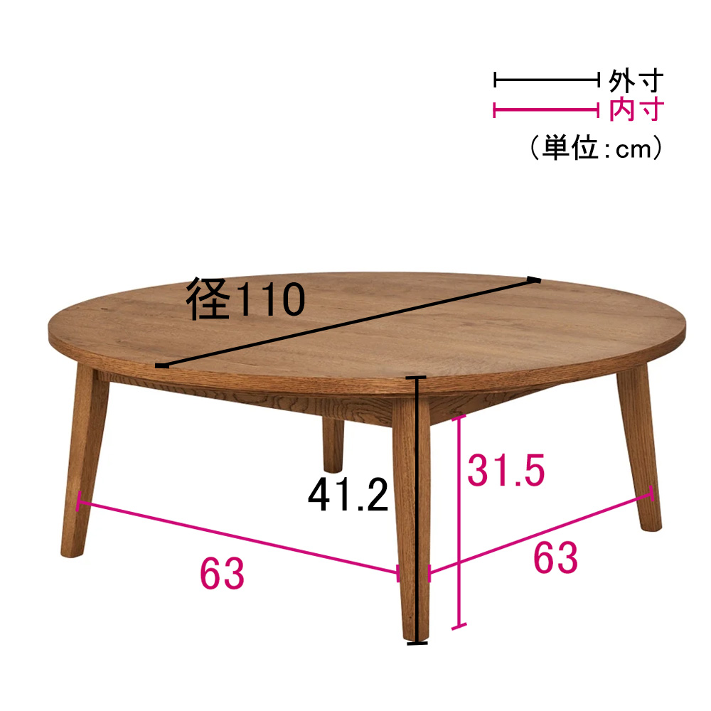 北海道産ミズナラ天然木のローこたつ 丸型 径110cm こたつテーブル こたつ 611455