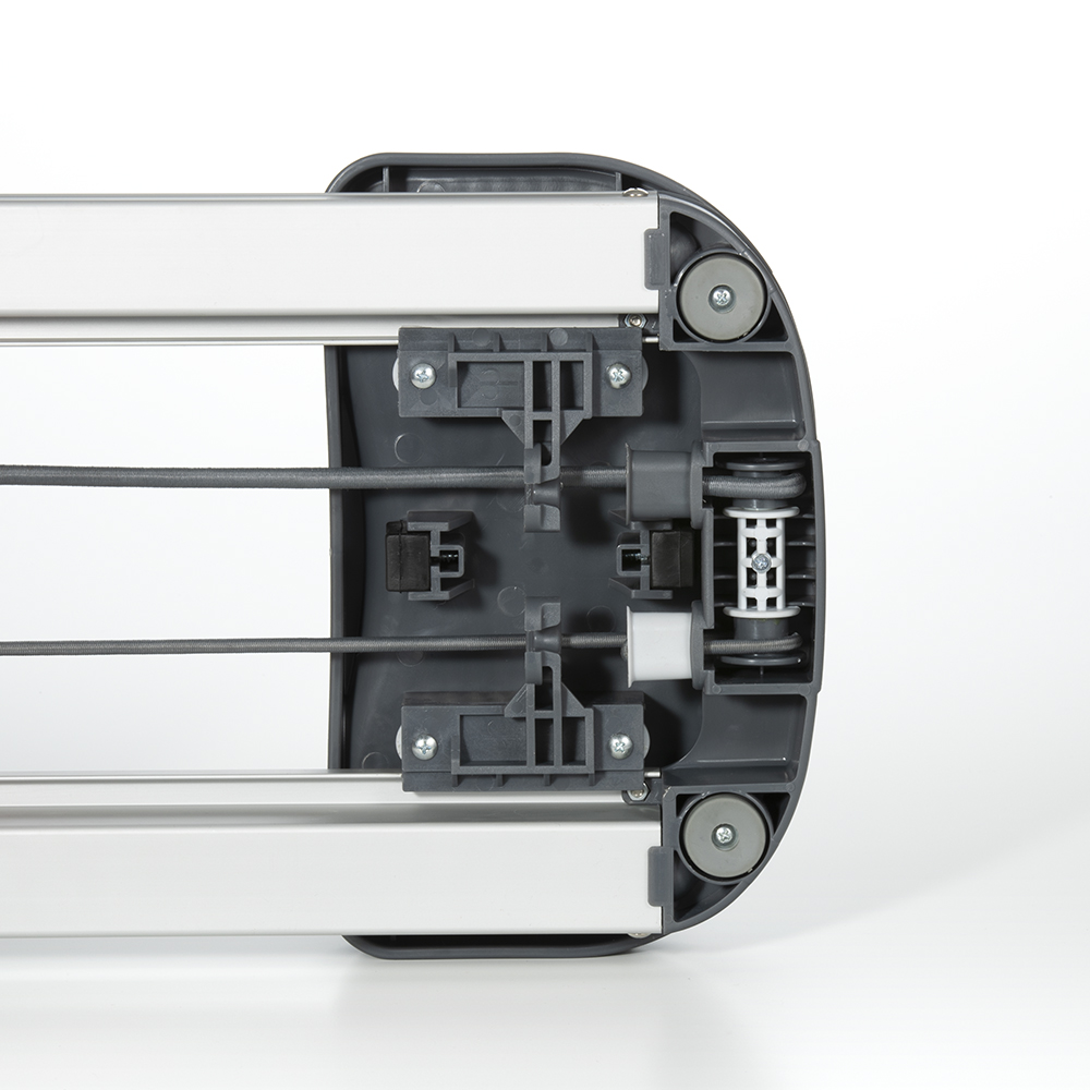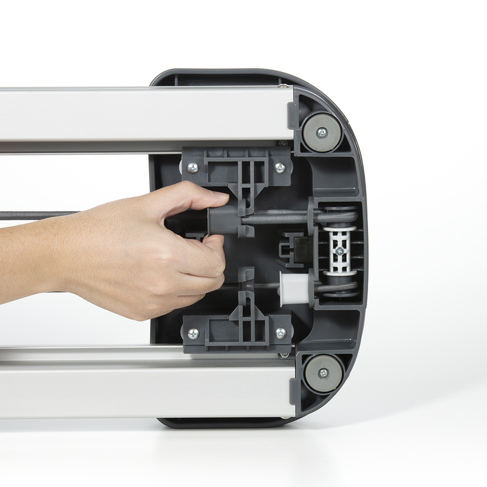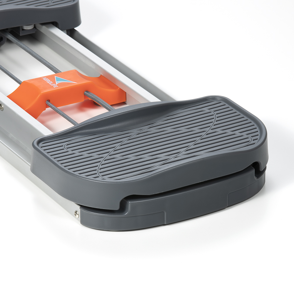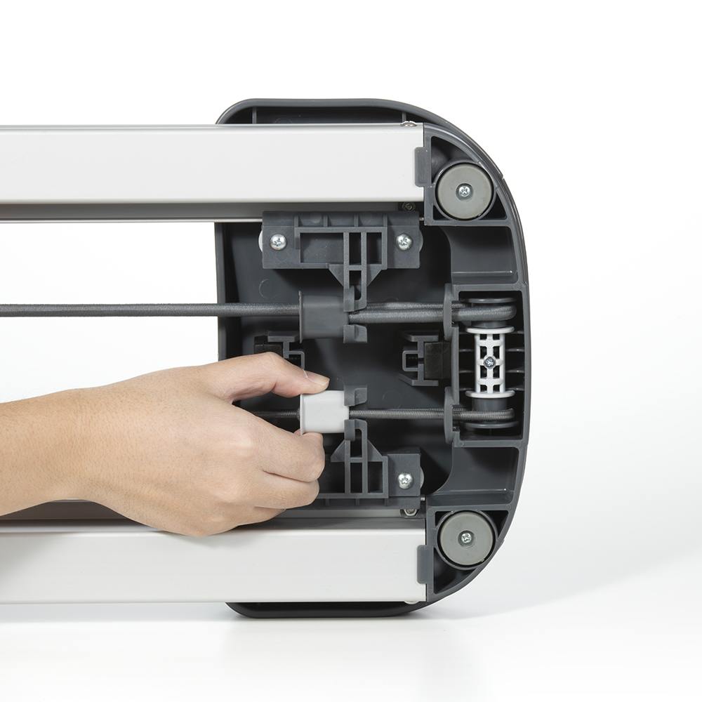裏側にはテンション(張りの強さ)が異なる2本のゴムが張られており、張るゴムを1本(弱)のみ、もう1本(強)のみ、2本と変えることで、3段階で負荷を調節できます。