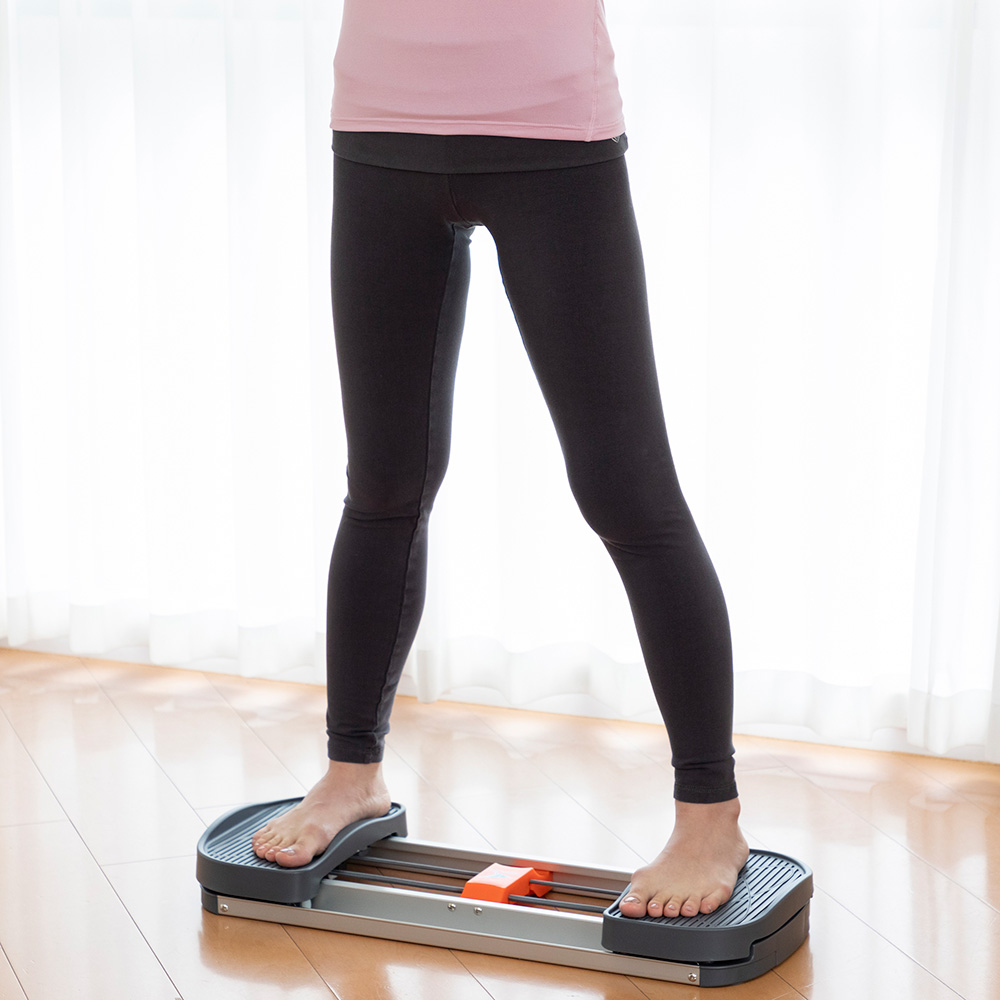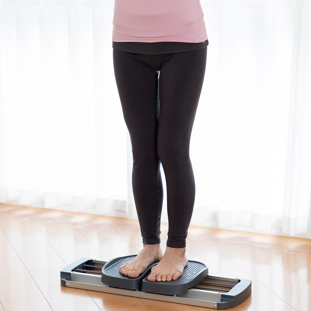 • 足を開閉するシンプルな動きで、運動回数の目安は、1セットわずか10回から!立ってバランスを取りながら開閉運動をすることで、体幹にもアプローチ。