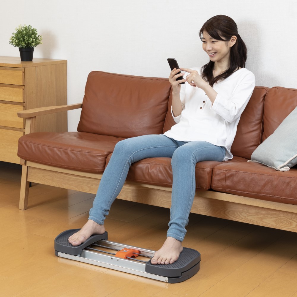 ソファやイスに座りながら、仰向けに寝転びながらの使用もおススメ。初心者でも使いやすく、スマホを見ながら、テレビを見ながら、“ながら”でのエクササイズも可能です。