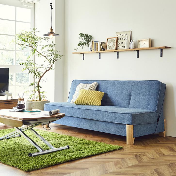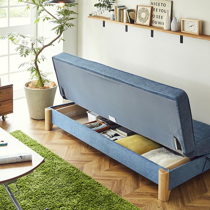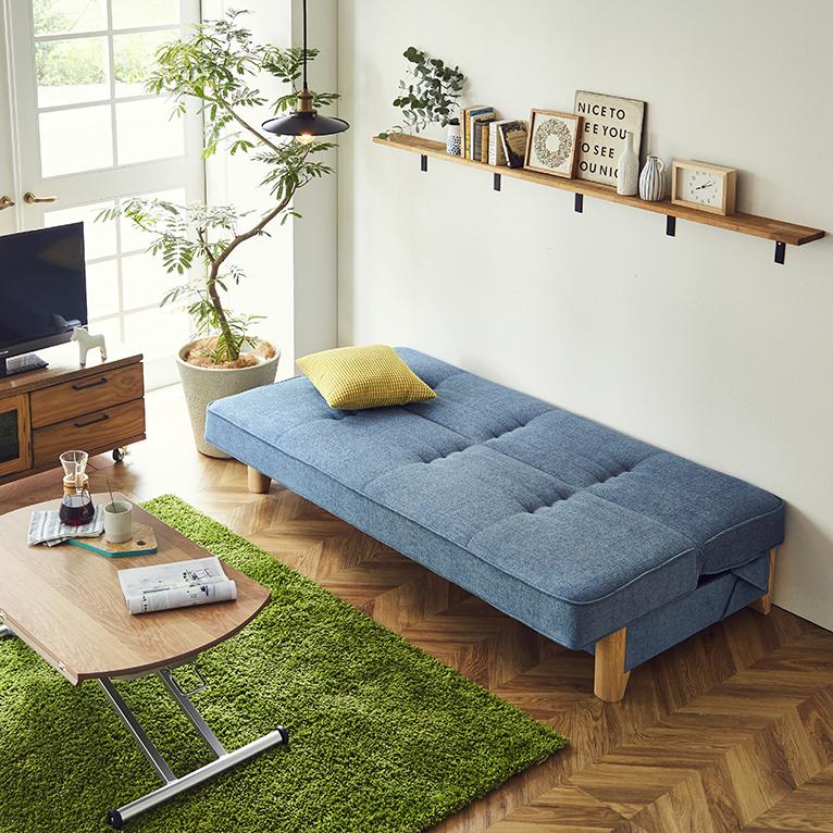 [ベッド時]ブルー 急な来客でもベッドとして使える