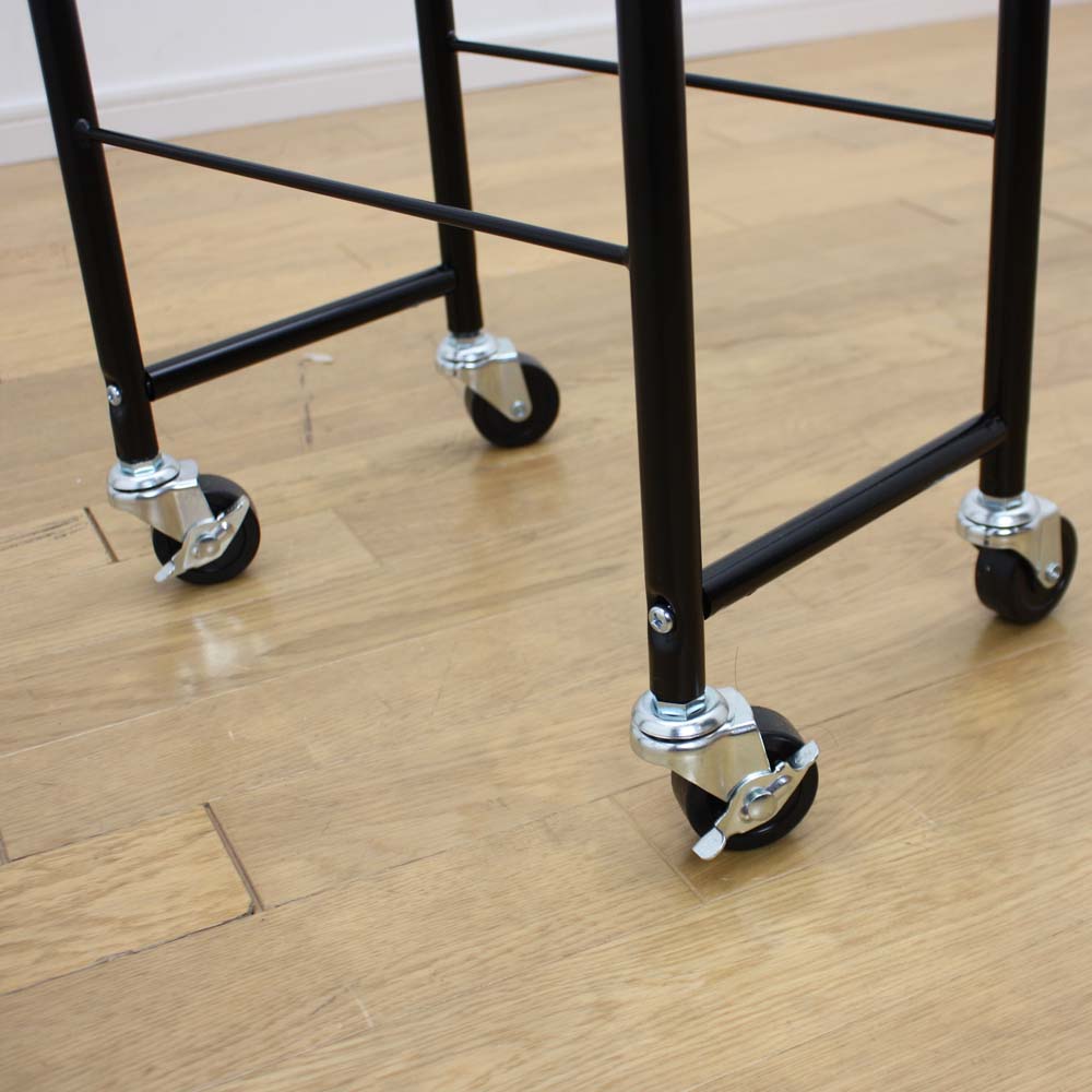 ・1台あたりキャスター4個付き。うち2個はストッパーも付いて、保管時はしっかり固定できます。