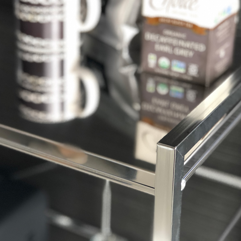 天板は熱々のお鍋だって置くことができる、清潔で丈夫なステンレス製。サビや汚れや水気にも強く、蒸気の出るケトルや炊飯器のような家電も安心。メンテナンスも簡単です。しっかりと安定感ある作りは、金属加工で有名な新潟県・燕三条地域のメーカーが手がけた証です。商品画像の説明