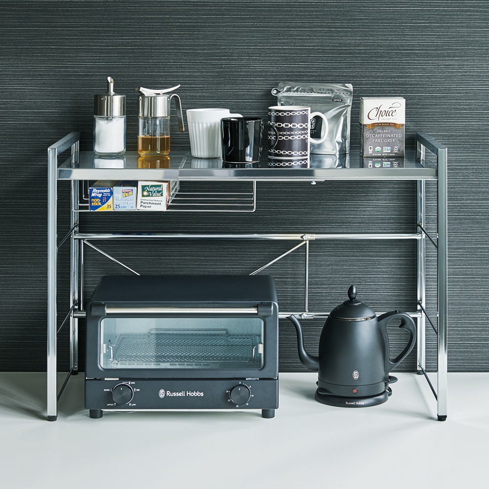調理家電が置ける頑丈ステンレス伸縮天板ラック 1段タイプ 冷蔵庫周り収納 キッチン用品収納 H91718