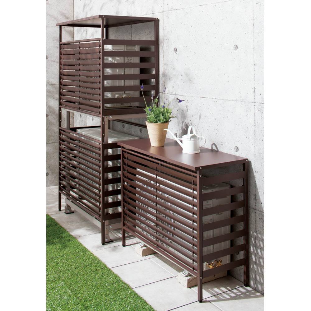 ・おうちの裏手でもご近所からは見られてしまう、やっかいなエアコン室外機。・2段設置の室外機をラックごとカバー。