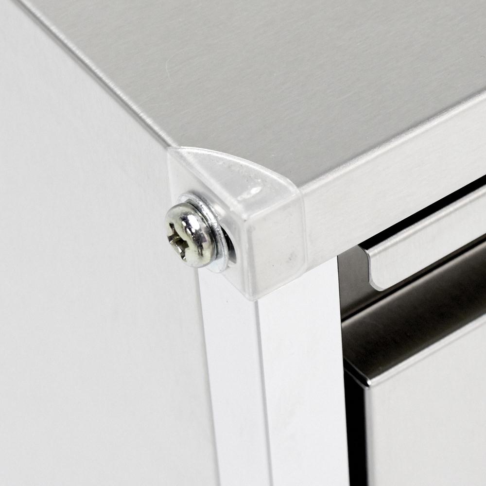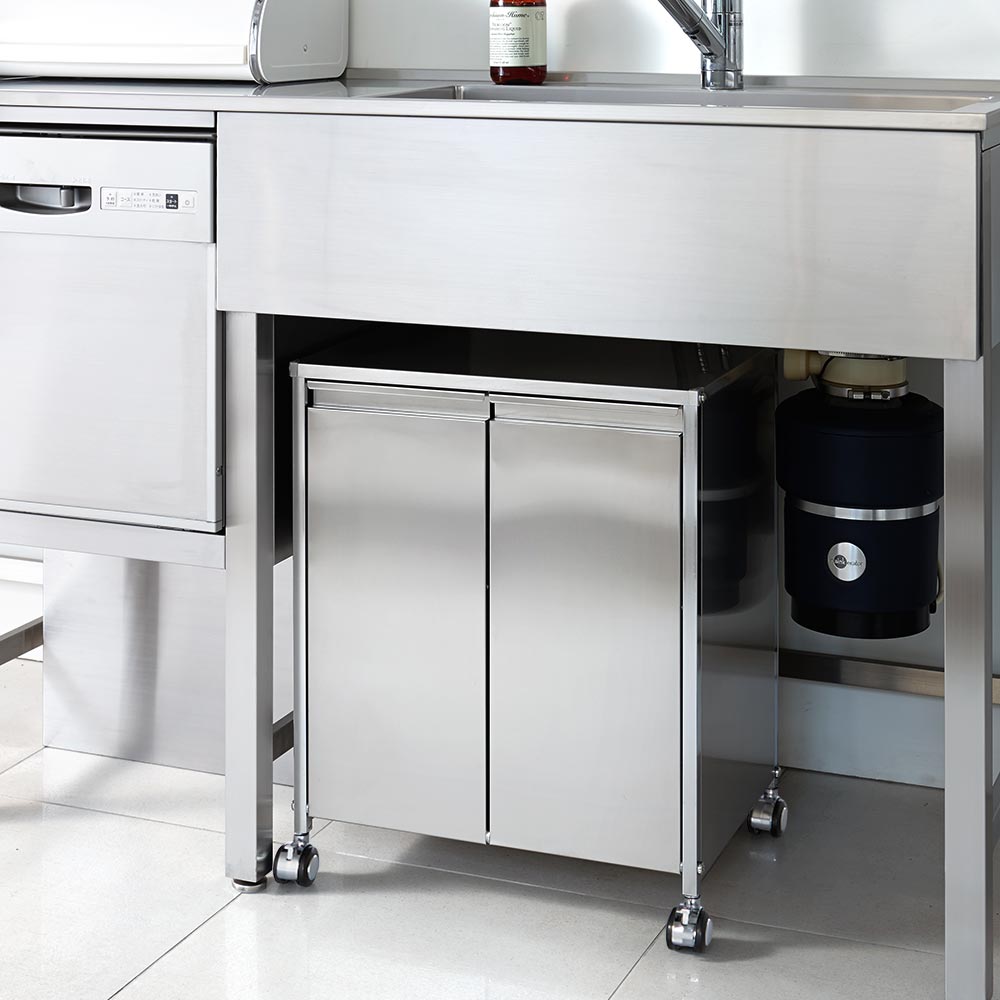 • サイドまで熱・水・汚れに強いステンレスで仕上げています。 ※写真のキャスターは旧タイプです。