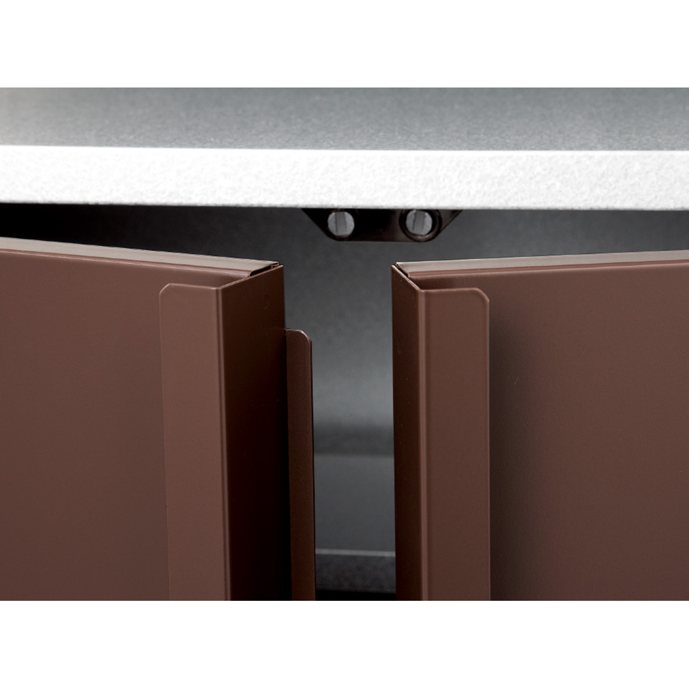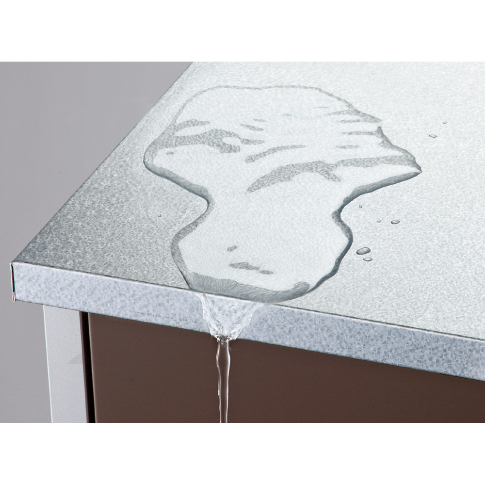風雨にさらされる天板側面や棚板には、丈夫で耐候性に優れたガルバリウム鋼板を使用。雨水が浸入しにくいつくり