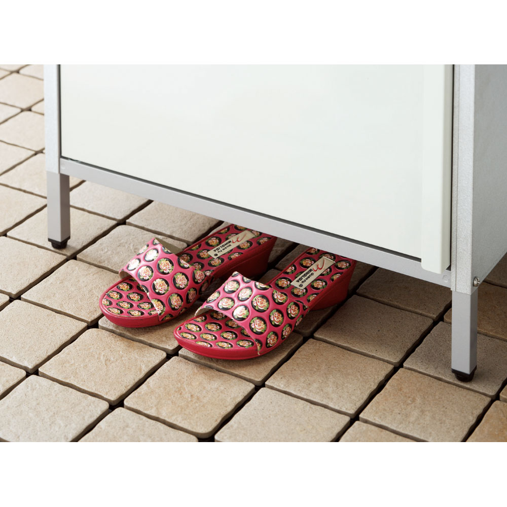 床下に約10cmの空間を設けた脚高使用。雨の跳ね返りを防ぐだけでなく、掃除がしやすいメリットも、床下のスペースには、ベランダ用サンダルなども収納できます。