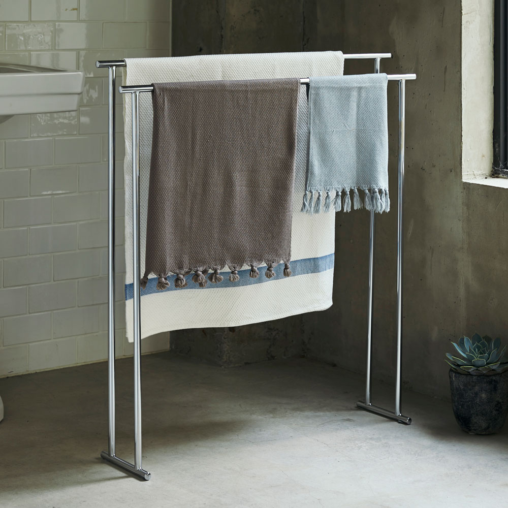 スリムステンレスタオルハンガー 2連 バスタオルスタンド ハンガー バス用品 バスマット H92233