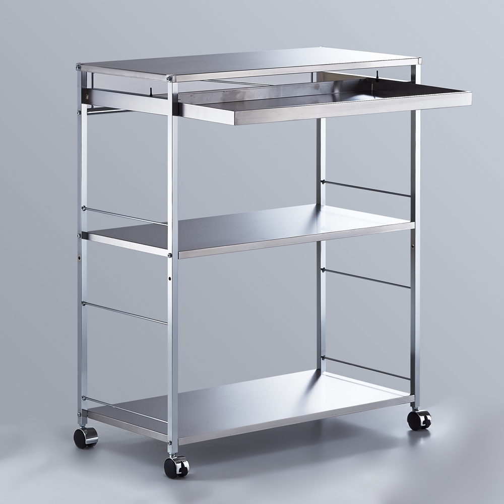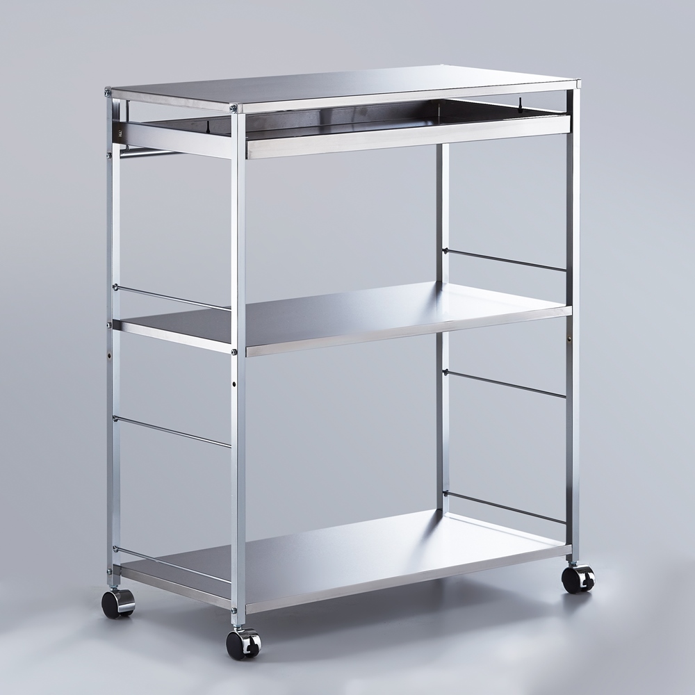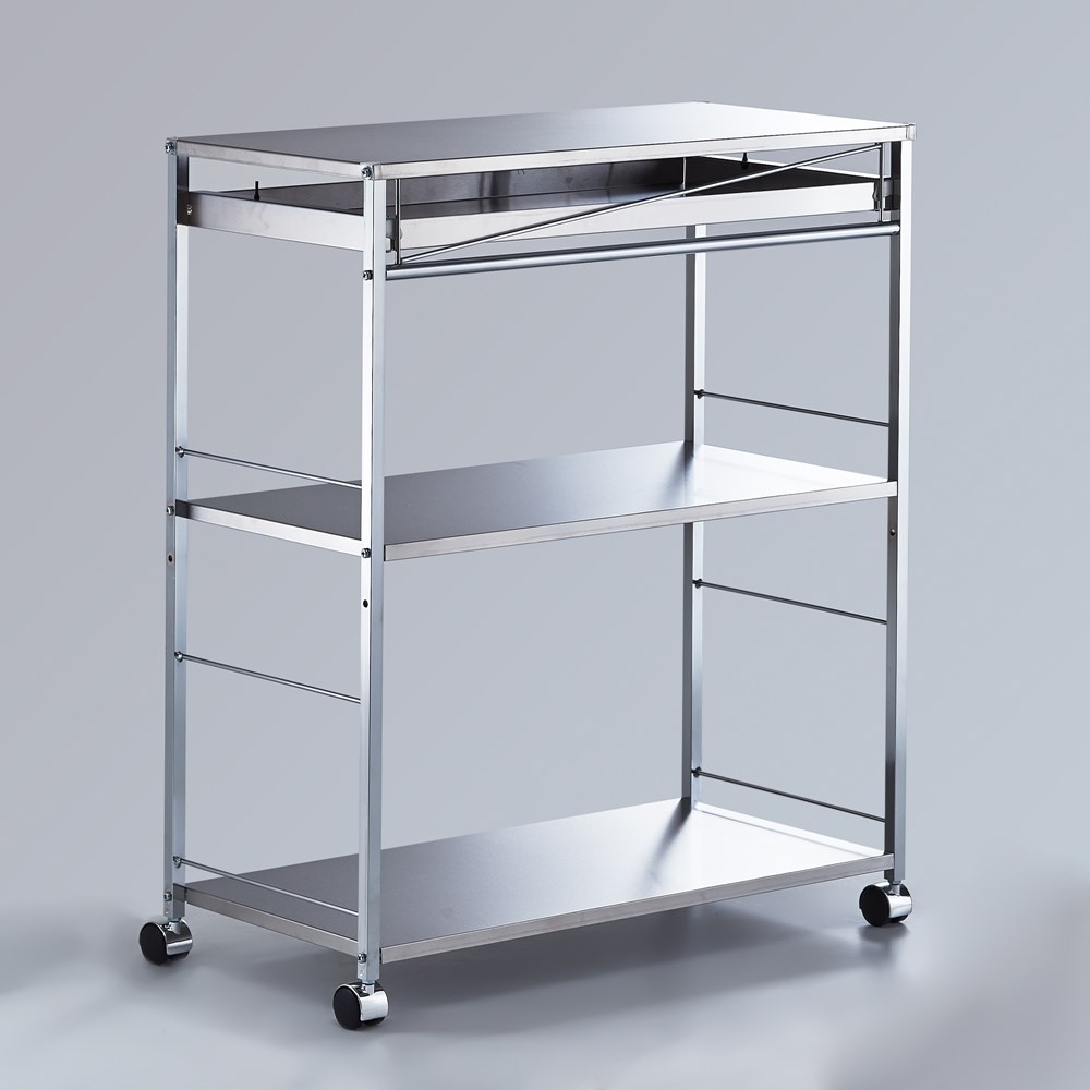 高さ85cmでシンクに続く作業台として使える、ステンレス製キッチンワゴン