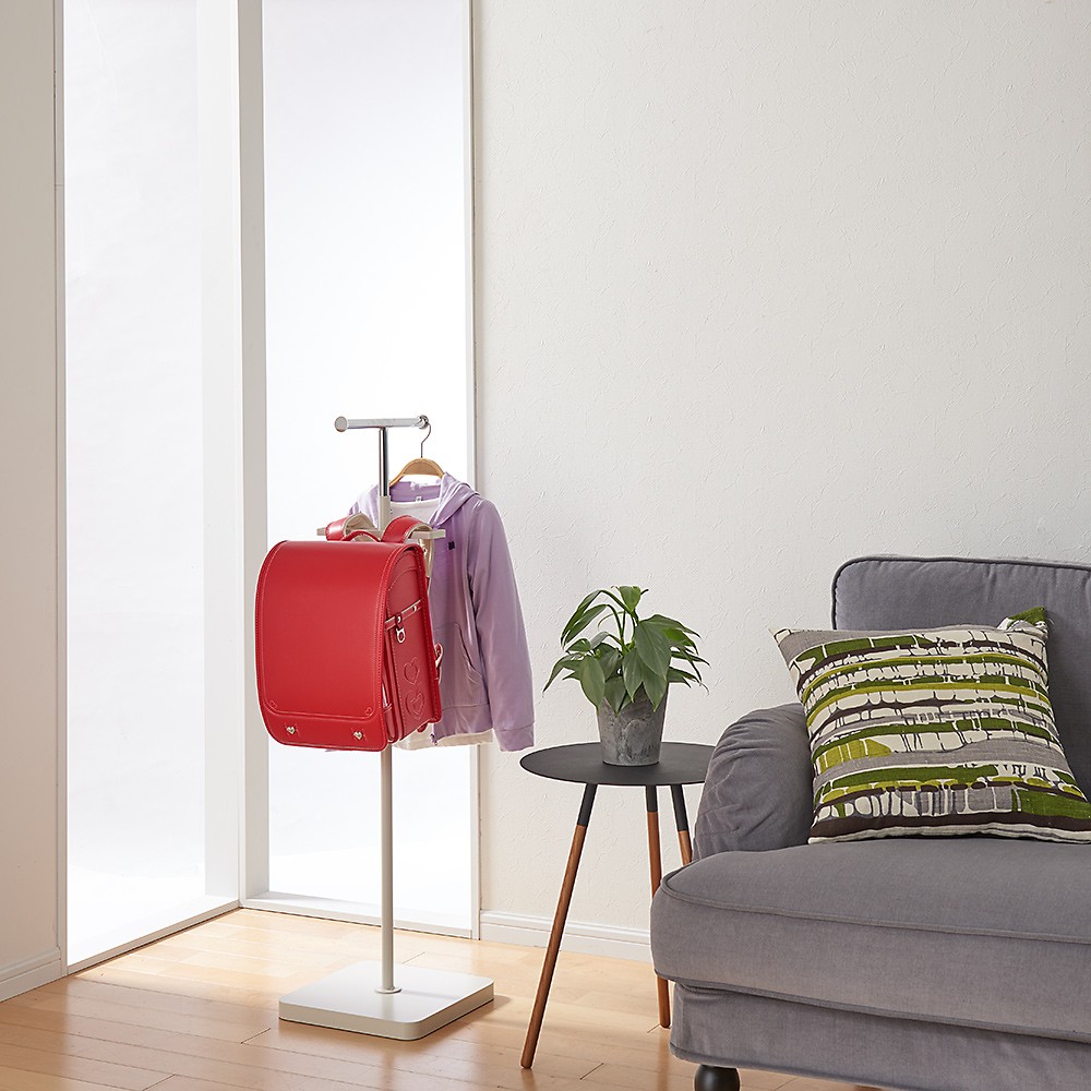 高さを低めに設定して、お子様用のハンガーラックとしてもOK。通学用グッズをまとめて忘れ物防止に。