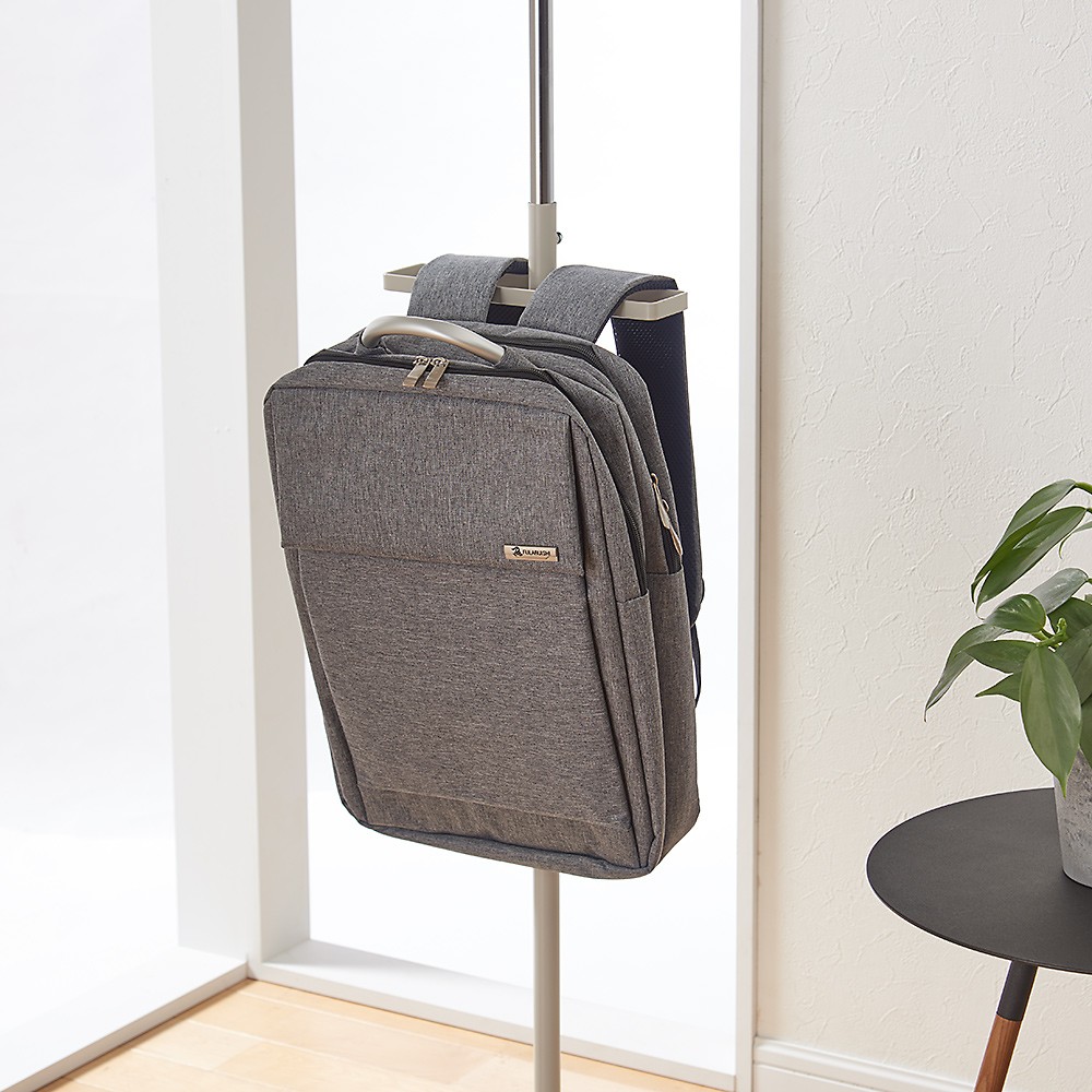 リュックのような形のカバン類なら背負うような形でダイレクトにかけて置くこともできます。※写真はシングルタイプです