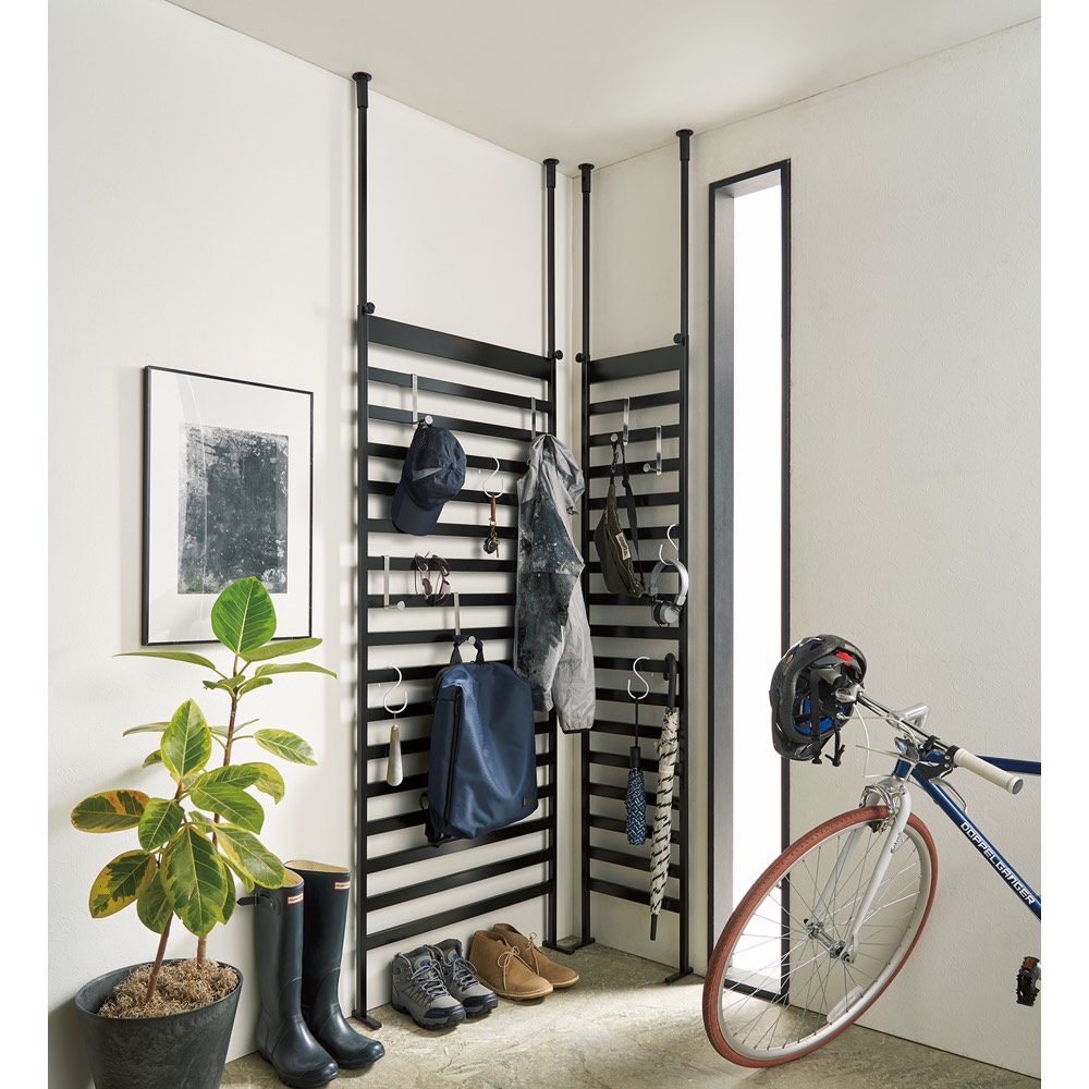 ◆デッドスペースになりがちな廊下や玄関の壁面を有効活用できる、ポールハンガーのような突っ張りハンガーラック。