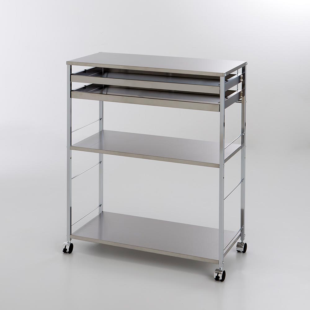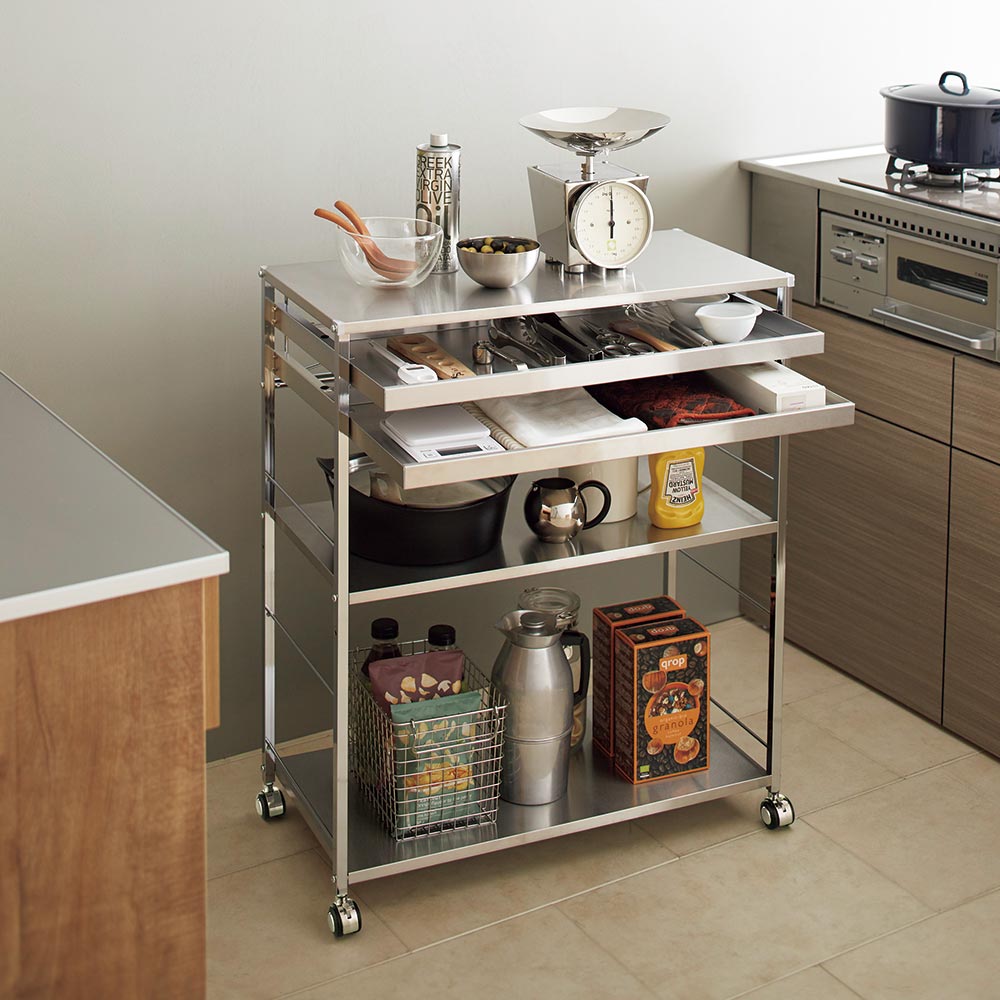高さ85cmでシンクに続く作業台として使える、ステンレス製キッチンワゴン