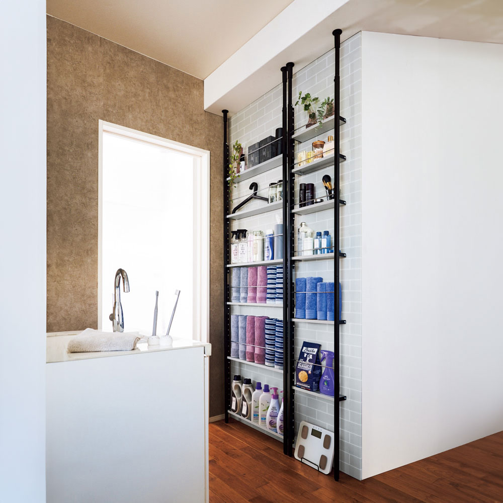 玄関では靴のケア用品やスリッパを、洗面所ではタオルや洗面用品を、リビングでは本や小物を、空間を圧迫せず、すっきりと暮らしに溶け込みながら、収納の可能性を広げるアイテムです。