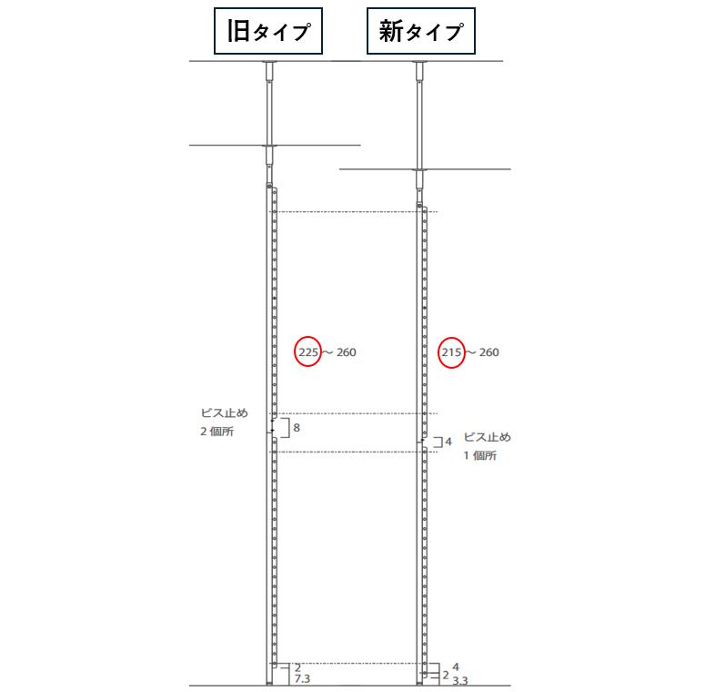 皆様のご要望にお応えし、より低い天井にも対応できるよう対応天井高を225cmから215cmに改良致しました。