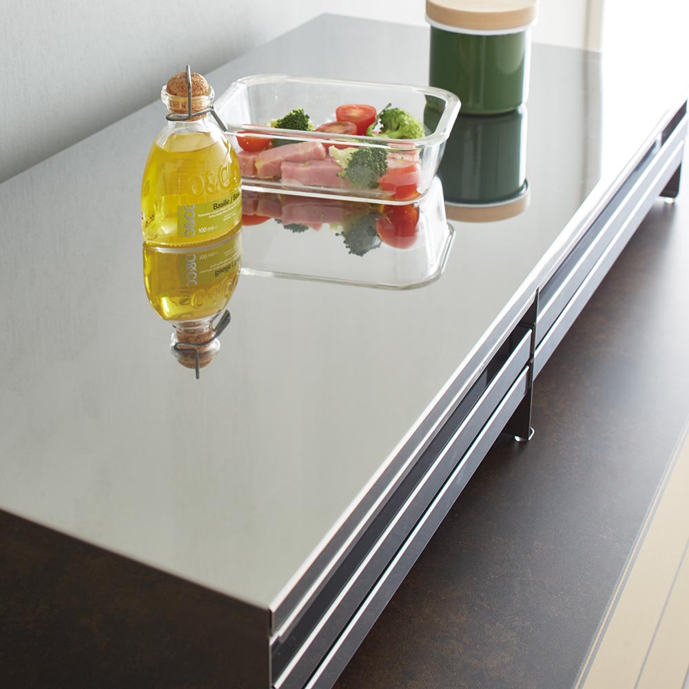 天板は美しい鏡面仕上げで、水や汚れに強く、サッと拭くだけで簡単に取れます。