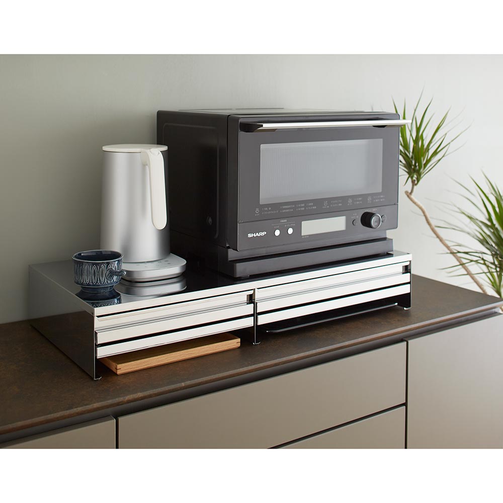 電子レンジだけでなく、炊飯器やトースターなどの家電下に置いても◎(※写真は幅45cmタイプ)