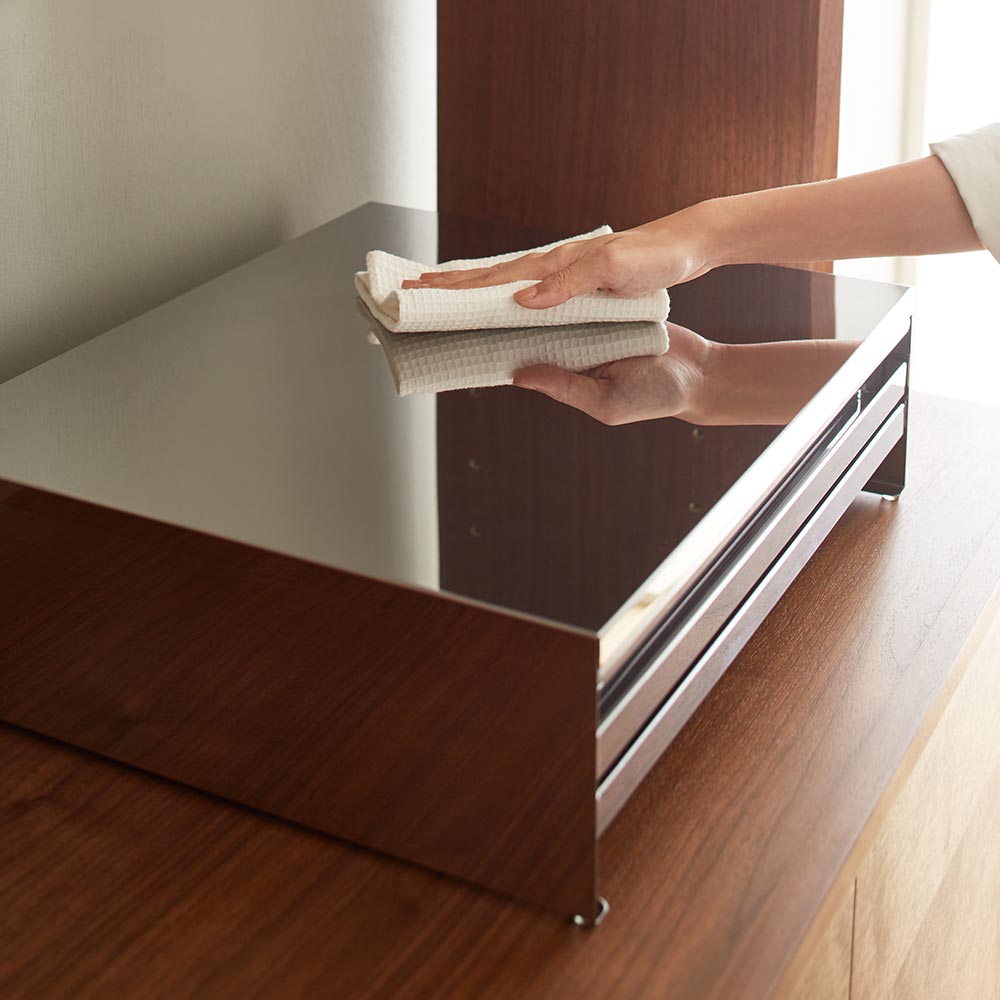 天板は美しい鏡面仕上げで、水や汚れに強く、サッと拭くだけで簡単に取れます。
