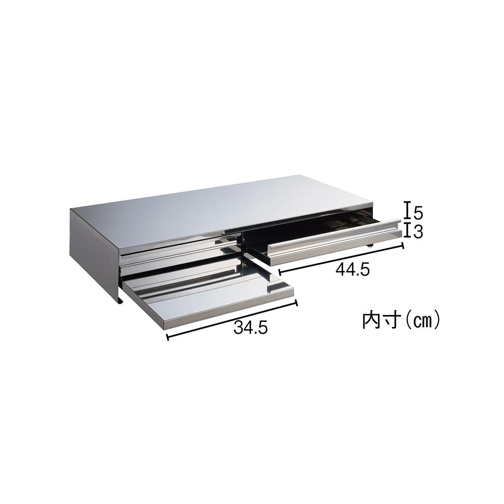 幅80cmは引き出し・スライドテーブル・下オープン部が区切られています。左:45cm 右:35cm
