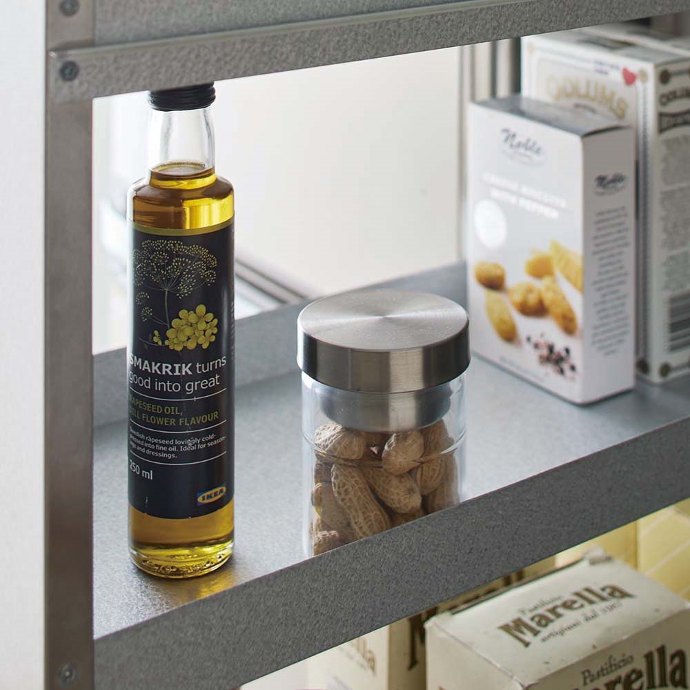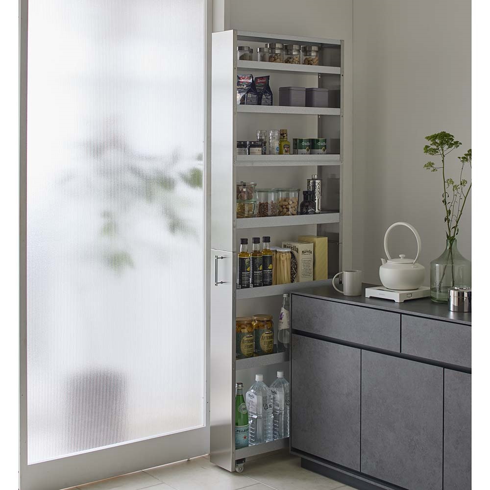 清潔感あふれるステンレス製でお手入れ簡単。デッドスペースを大容量収納に変えるキッチン収納