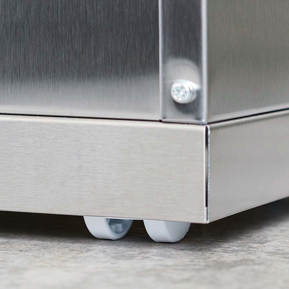 ■サッと開けしめできるスライド式のフタなので、調理中に開けっ放しにできて効率アップ!キャスター付きで移動もスムーズ