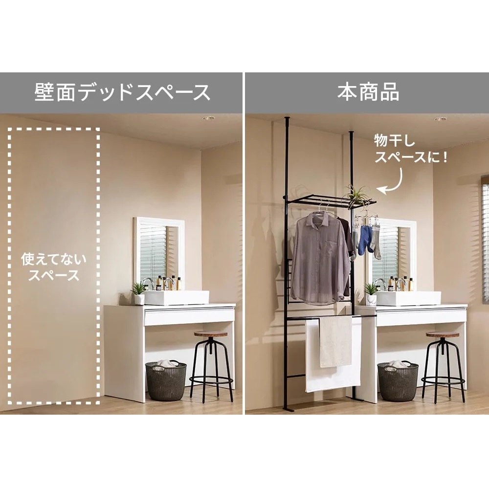 何も置いていなかった壁際がオシャレな物干しスペースに大変身。使わない時はバーユニットを畳むことができるので、空いたスペースを有効にお使いいただけます。