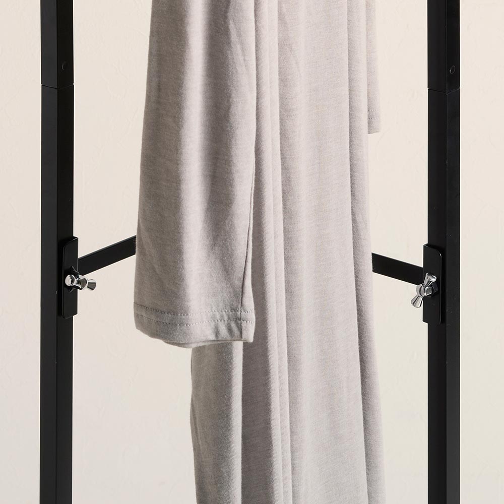 中段のL型バーは、身長や掛けるものの丈に応じて無段階に高さ調節が可能。