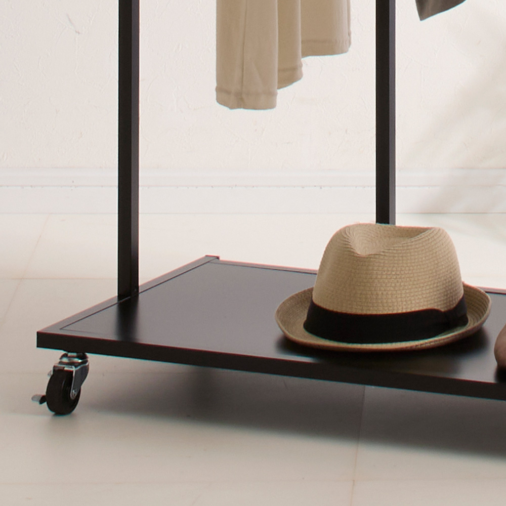 キャスター付きなので、女性でも衣類を掛けたまま移動ができます。お掃除や模様替えもラクラクです。