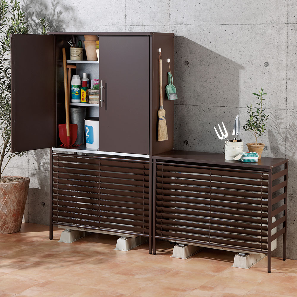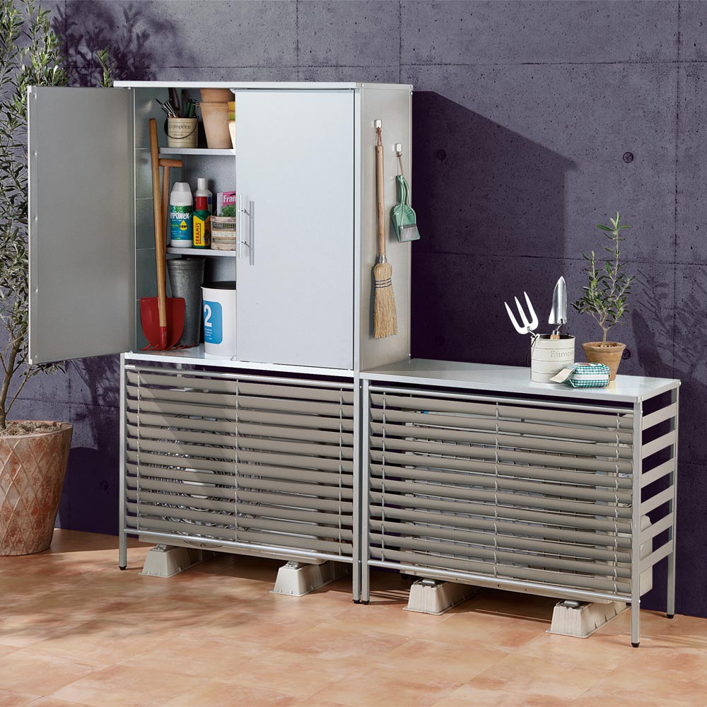 ・カバー上部には天板付き。室外機を隠しながら、室外機カバー上部のデッドスペースを有効活用できます。・ちょっとした飾り棚として、また簡単な作業台としても重宝します。