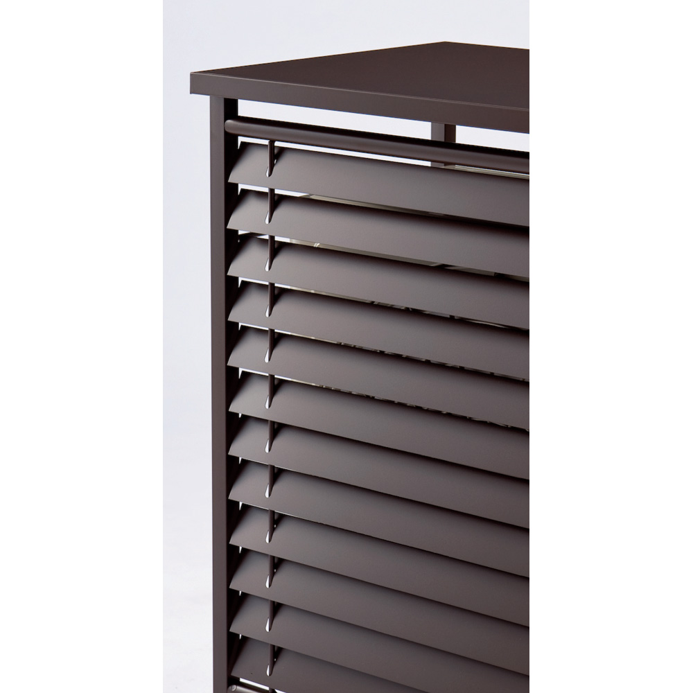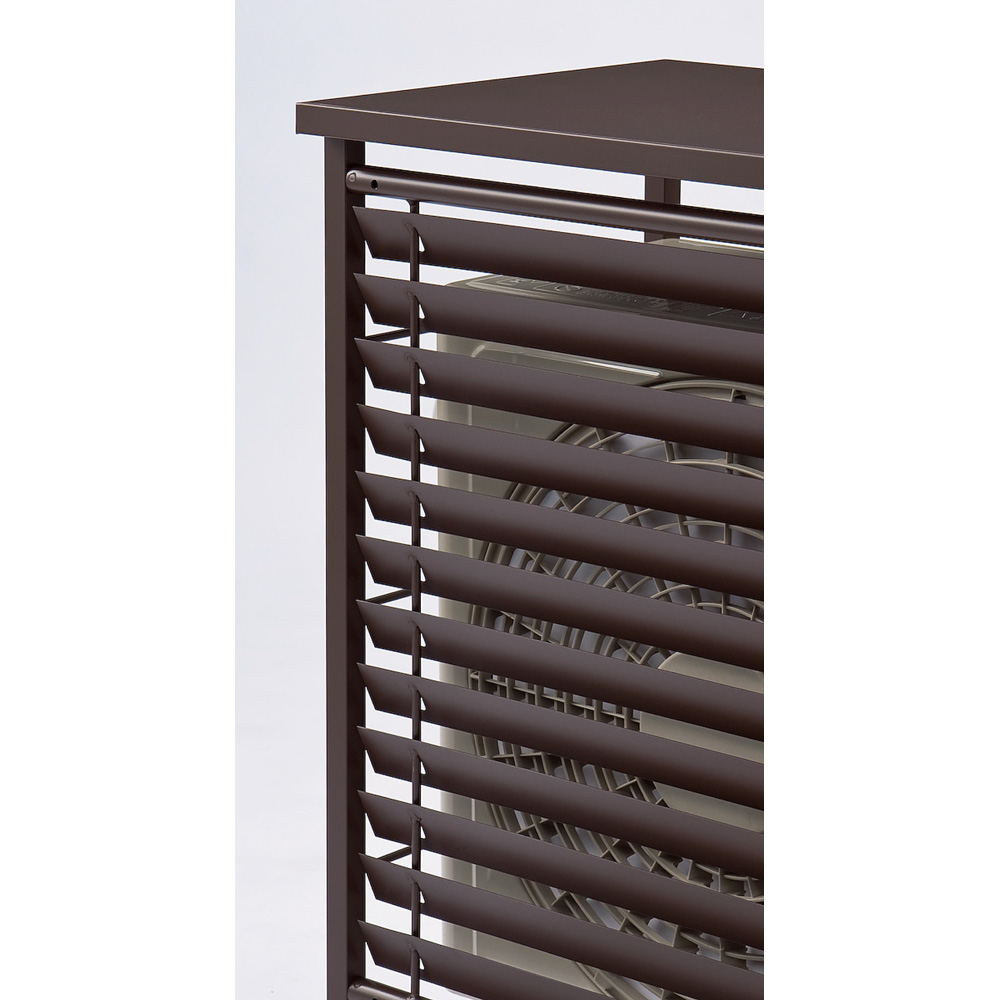 正面の逆ルーバーは、エアコン室外機からの熱風を上方に逃がします。