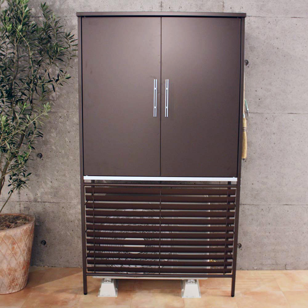 逆ルーバー室外機カバー 収納庫付き 高さ162cm