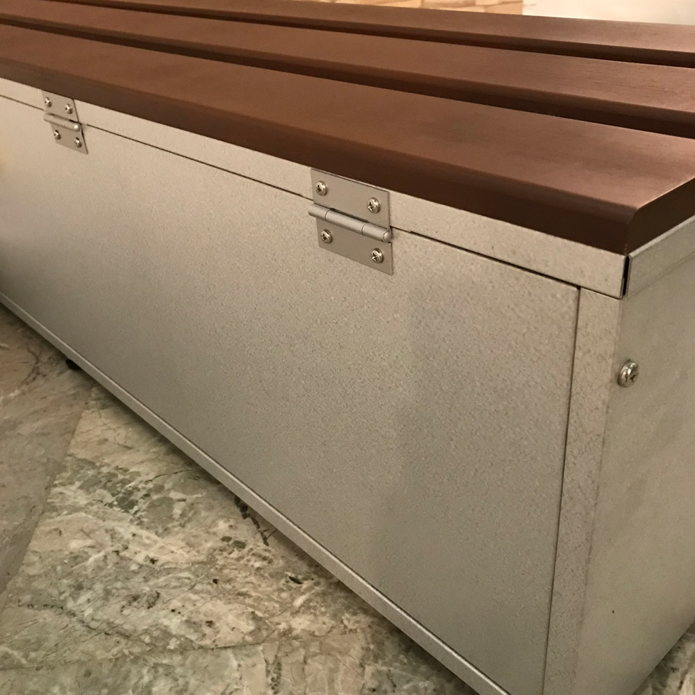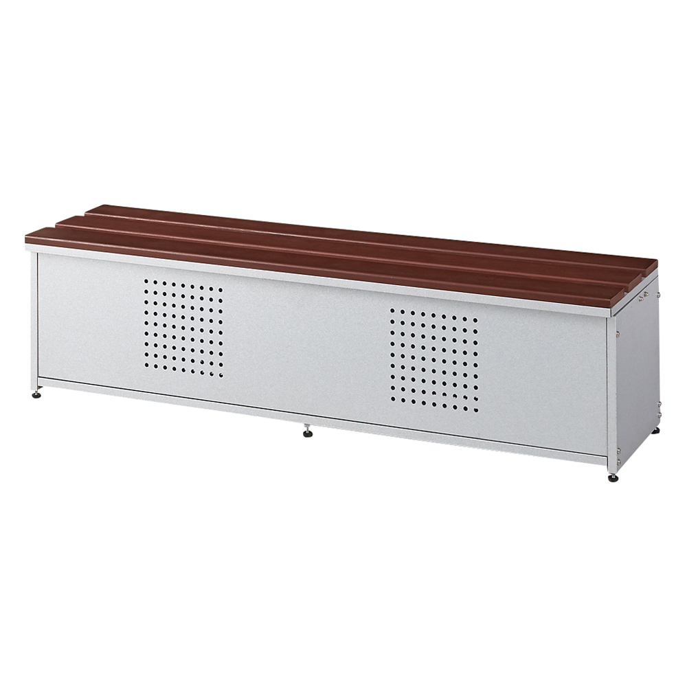 スリムなベンチ収納庫に踏み台ステップも仲間入り。狭いスペースにも設置でき、デザイン性のあるパンチングメッシュは、湿気やニオイのこもりを防ぎます。