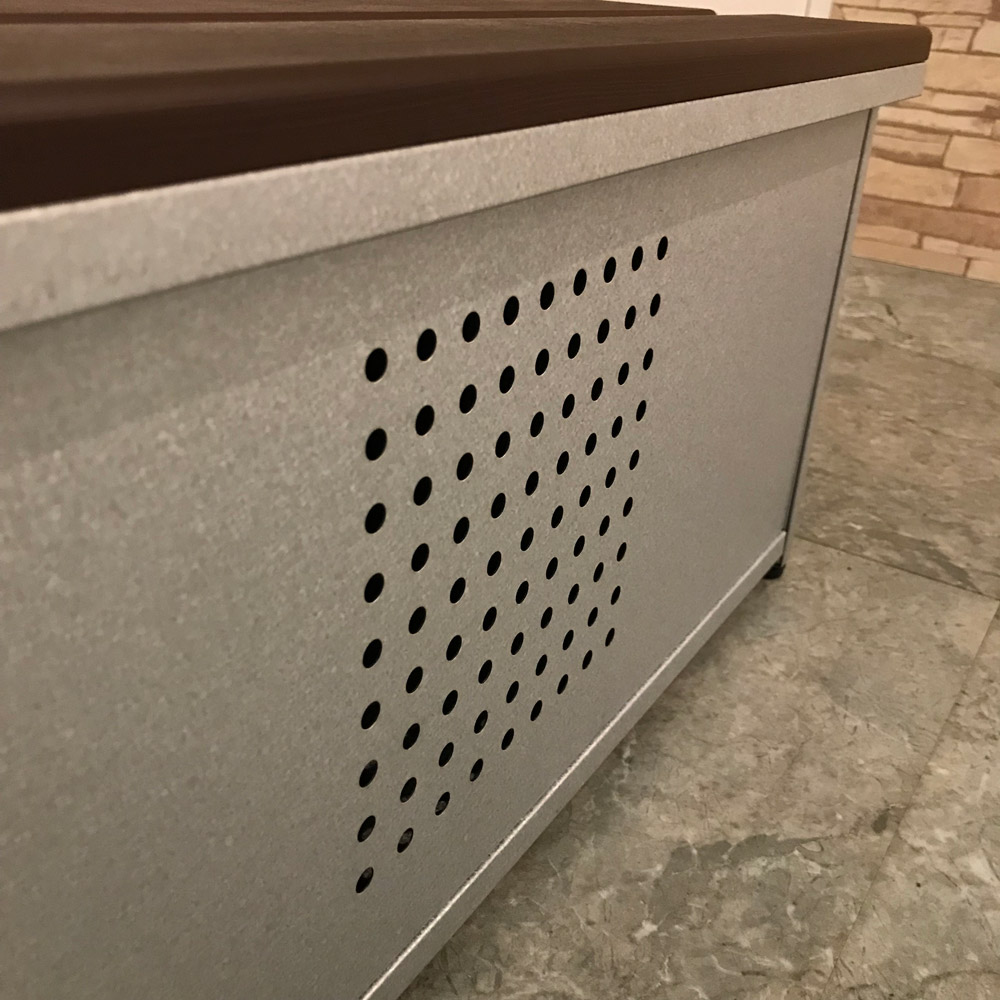 前面・底板は、湿気やニオイのこもりを防ぐパンチング孔加工。