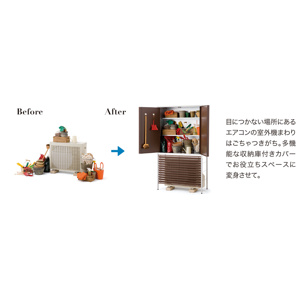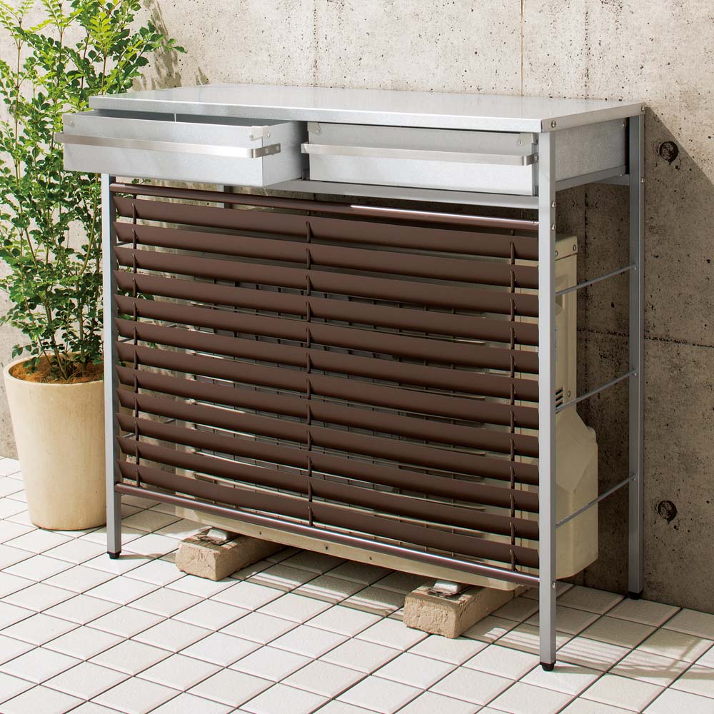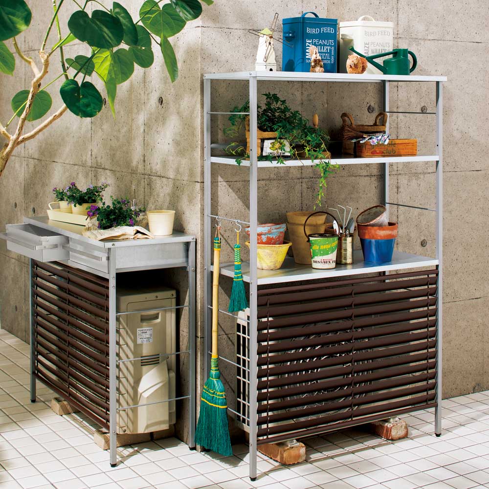 ・カバー上部には天板付き。室外機を隠しながら、室外機カバー上部のデッドスペースを有効活用できます。・ちょっとした飾り棚として、また簡単な作業台としても重宝します。